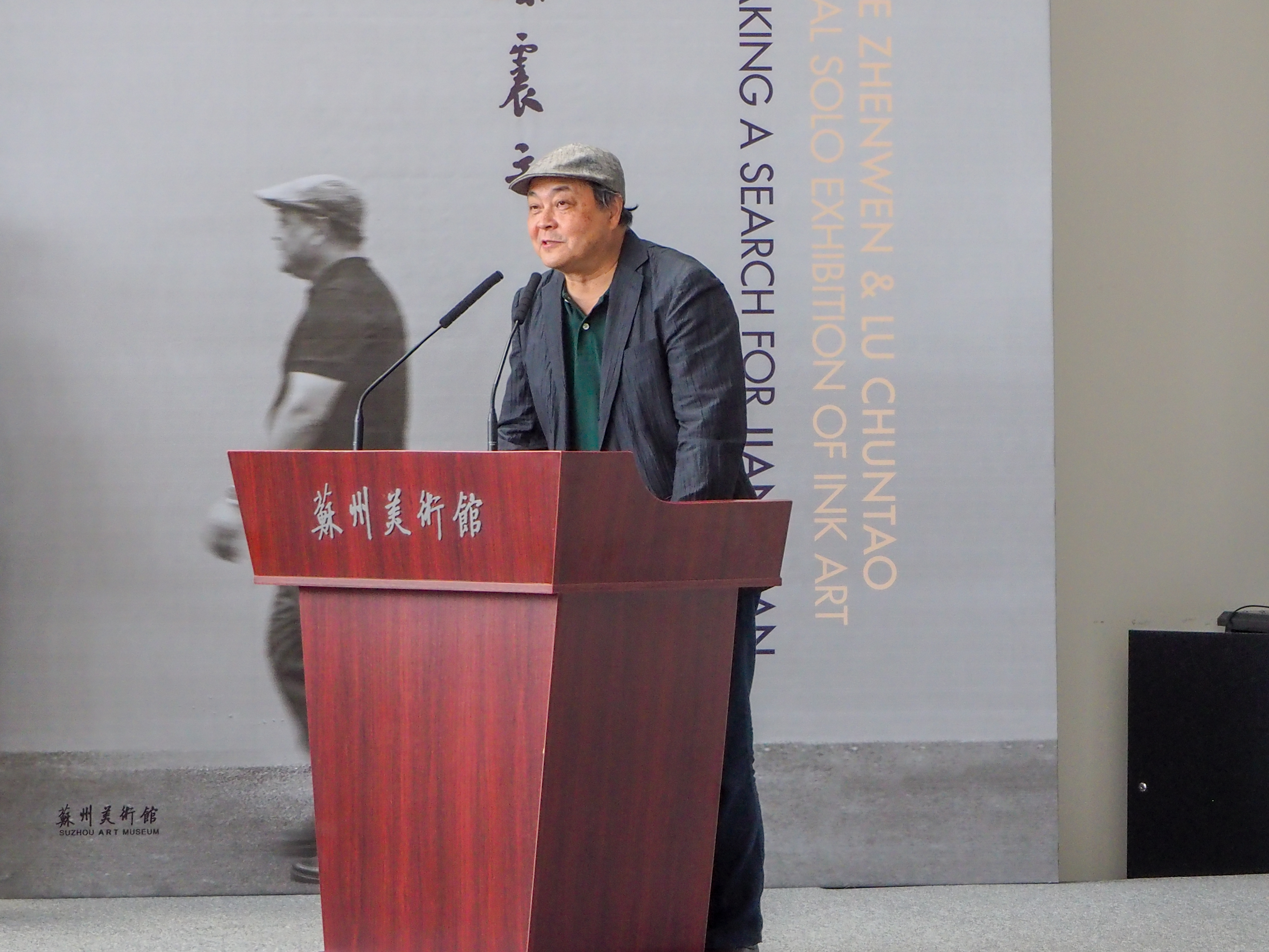 开幕式上,“寻觅江南”策展人张立行介绍了此次展览情况。他表示,在苏州美术馆这样的苏式建筑里举办“寻觅江南”,可谓天作之合。乐震文和陆春涛两位艺术家虽然年龄不同,背景各异,创作风格相去甚远,但他们的作品,不管与“江南”这一主题相关还是无关,直接还是间接,巨幛还是小品,工笔还是写意,内蕴的江南诗性、姑苏诗意却无处不在。