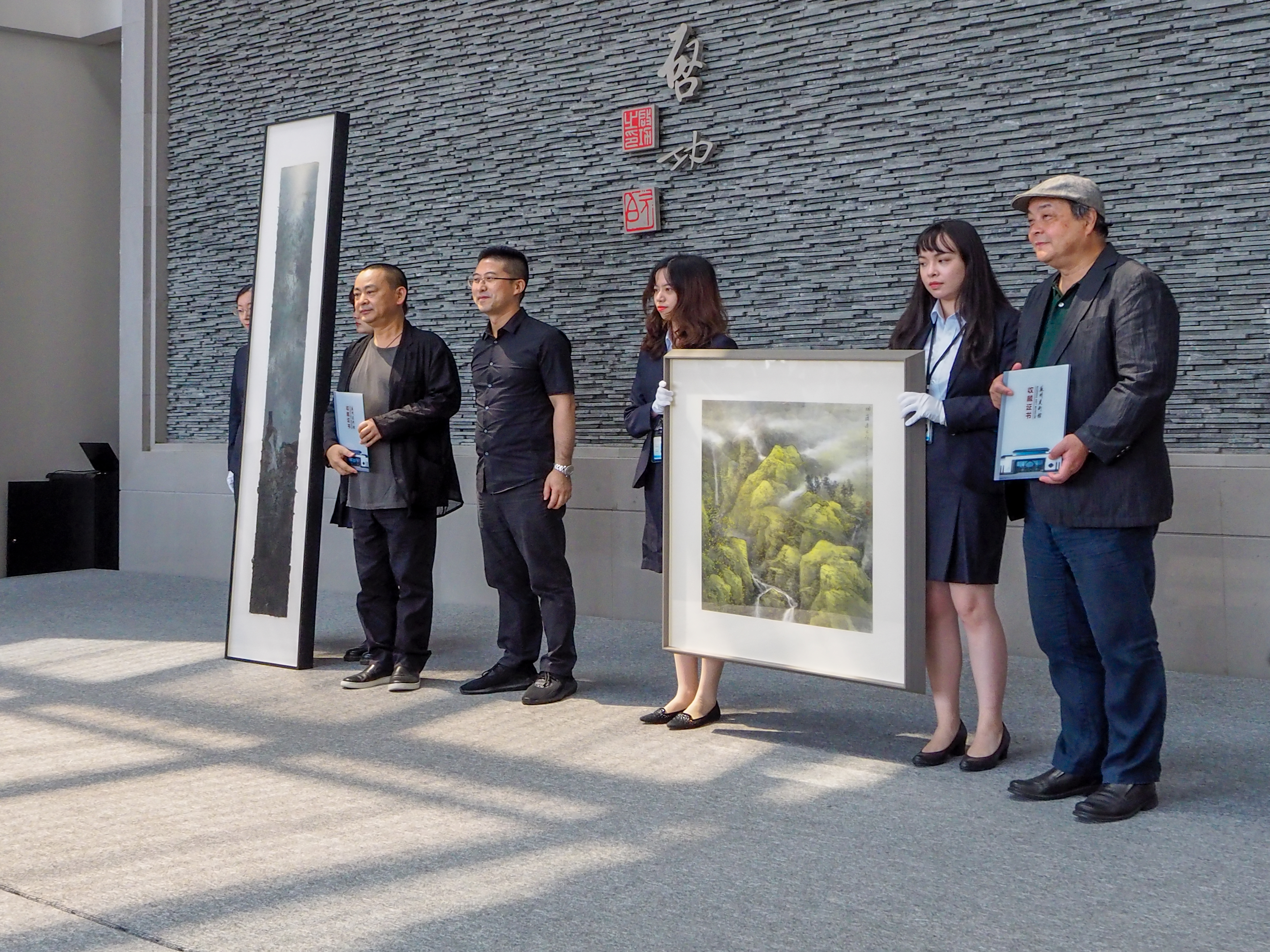 随后,举行了乐震文、陆春涛作品捐赠仪式,曹俊馆长向两位艺术家颁发收藏证书。蔡威副主任宣布展览开幕。