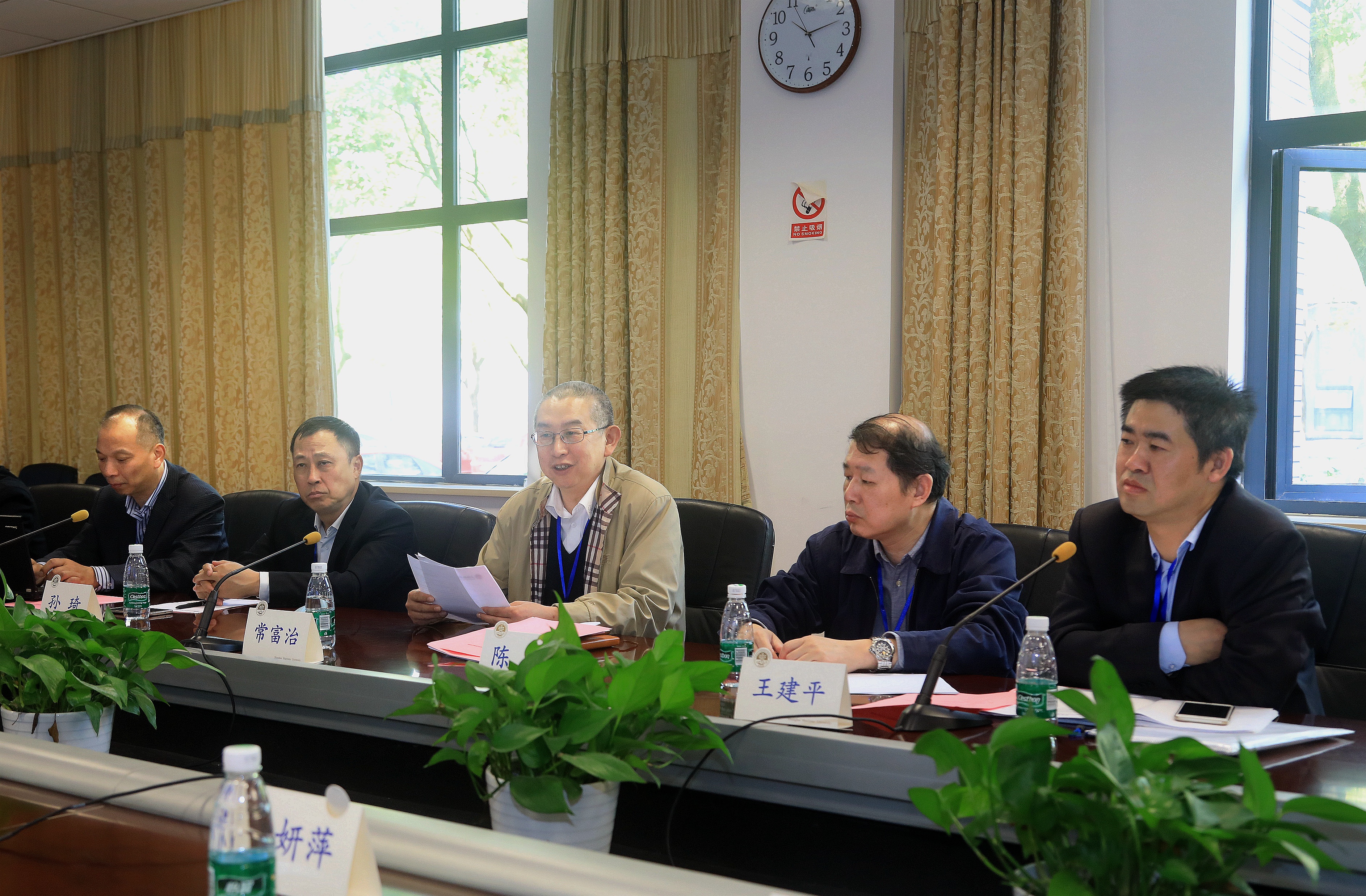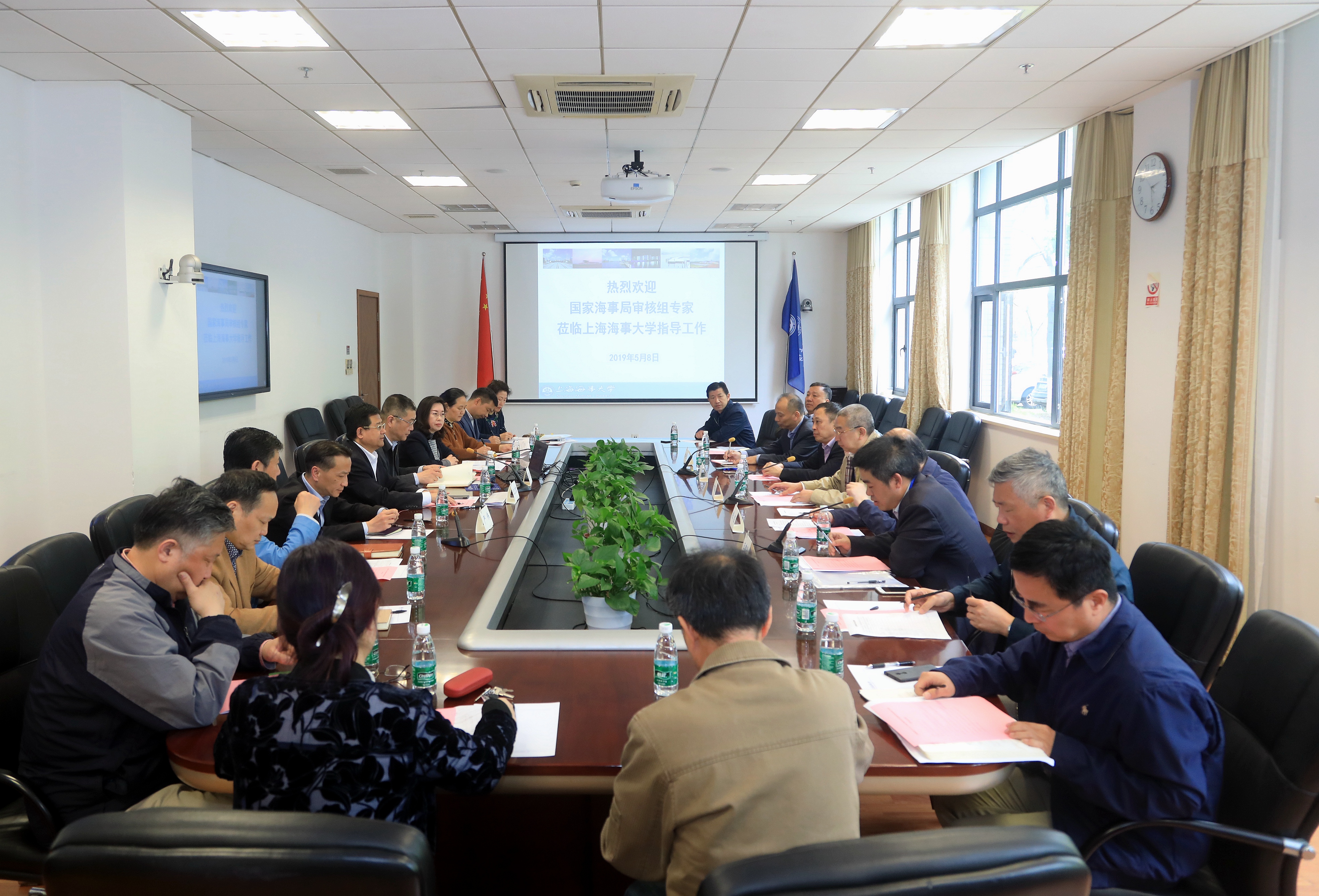 上海海事局质量管理体系审核组常富治、陈煜、孙琦、时冬生、王建平等专家,上海海事大学全体校领导出席,学校各受控部门、学院负责人等参加了审核会议。