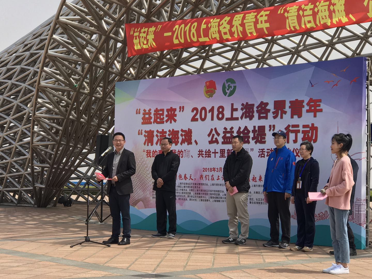3月31日,“益起来”2018年上海各界青年“清洁海滩,公益绘堤”行动暨“我的青春我的海、共绘十里新彩堤”活动在南汇新城滴水湖畔举行。共青团上海市委员会副书记丁波,浦东新区区委常委、上海市临港地区开发建设管理委员会党组书记、常务副主任陈杰,上海市临港地区开发建设管理委员会党组成员、浦东新区南汇新城镇党委副书记、镇长张宇祥,以及上海海事大学相关部门负责人等出席开幕式。
