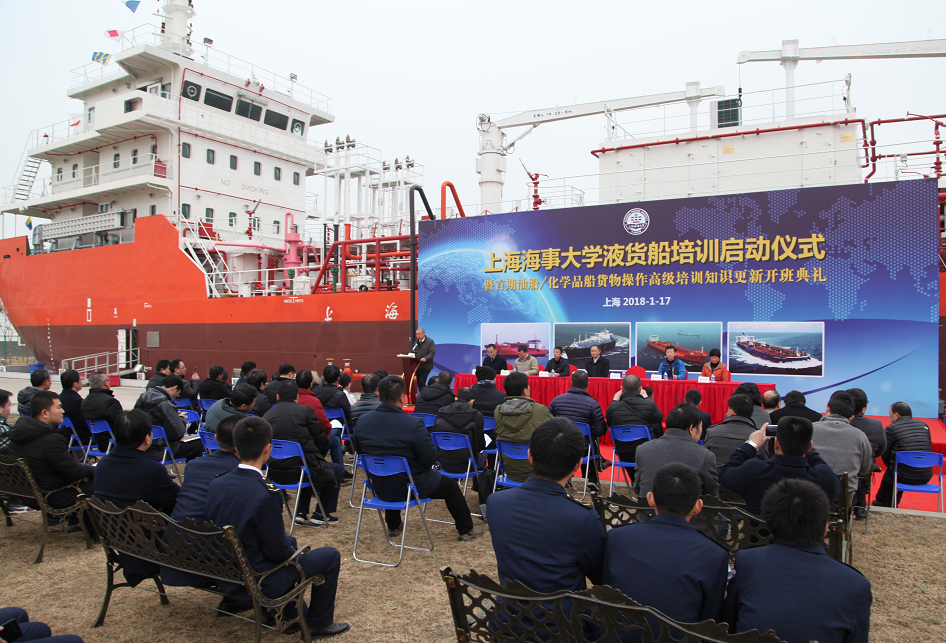 1月17日,上海海事大学举行液货船培训项目启动仪式暨首期油船、化学品船货物操作高级培训班开班典礼。上海海事局巡视员常富治,上海海事大学党委书记金永兴,副校长施欣,上海海事局船员处处长陈煜,我校相关学院负责人,以及中远海运船员管理有限公司等10余家航运企业代表出席启动仪式。