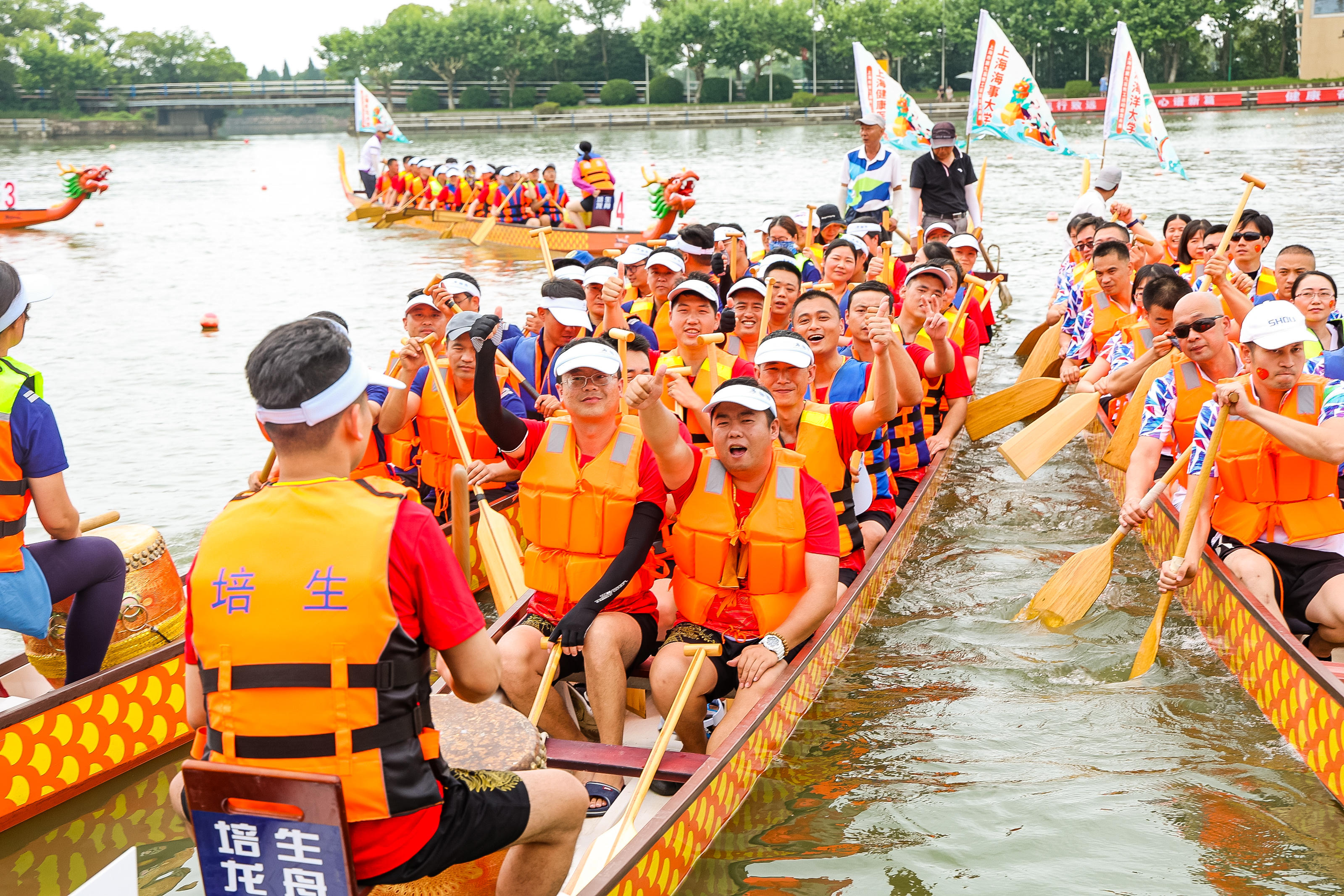 6月13日,上海市第九届教工运动会龙舟赛在上海竞技体育训练管理水上运动中心举行。各高校、区教育局、直属单位、两委机关、中职院校等31支参赛队伍分成高校A组、高校B组、普教组和机关直属组展开了龙舟竞赛。学校教工龙舟队在比赛中获得亚军。