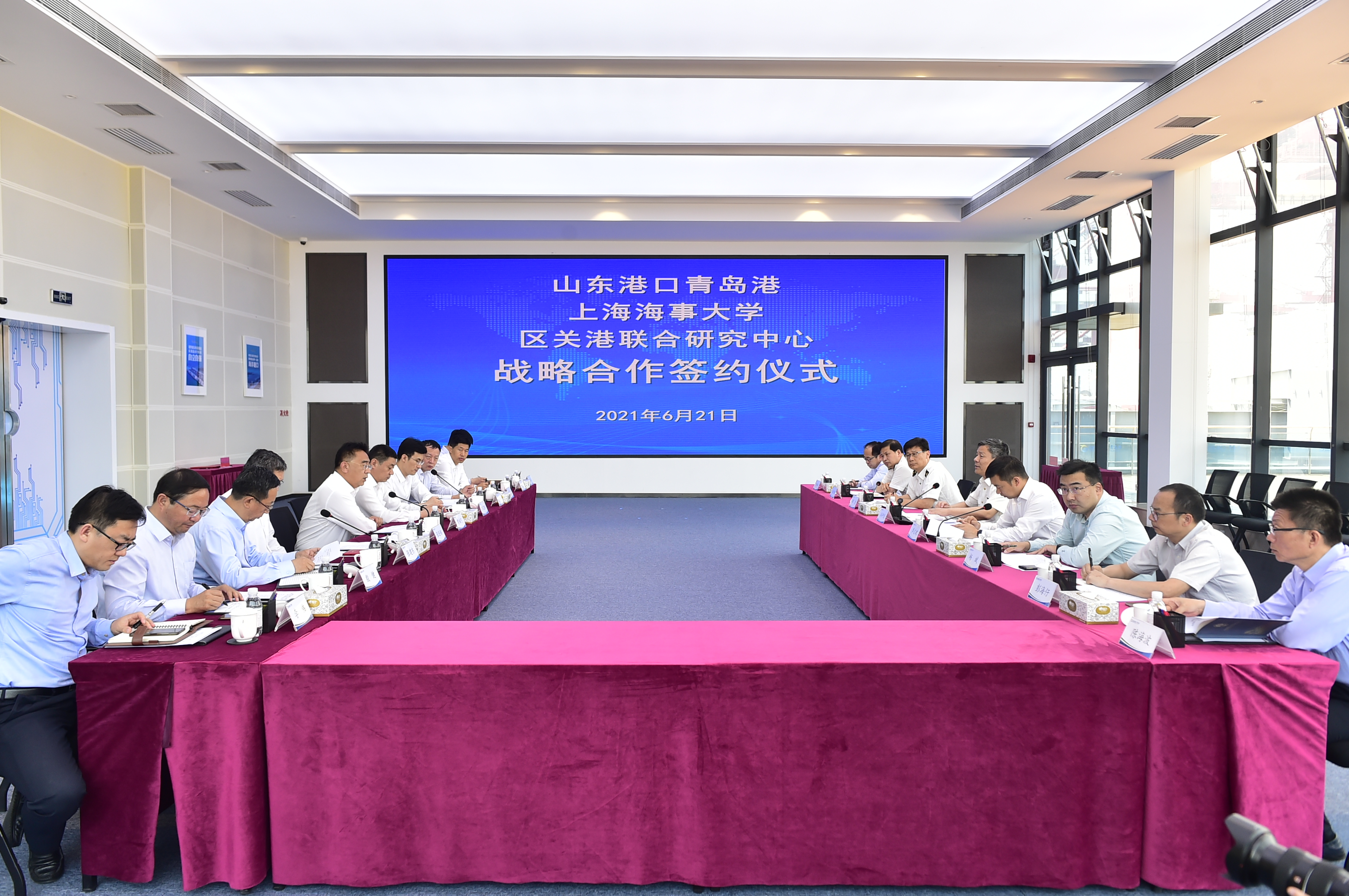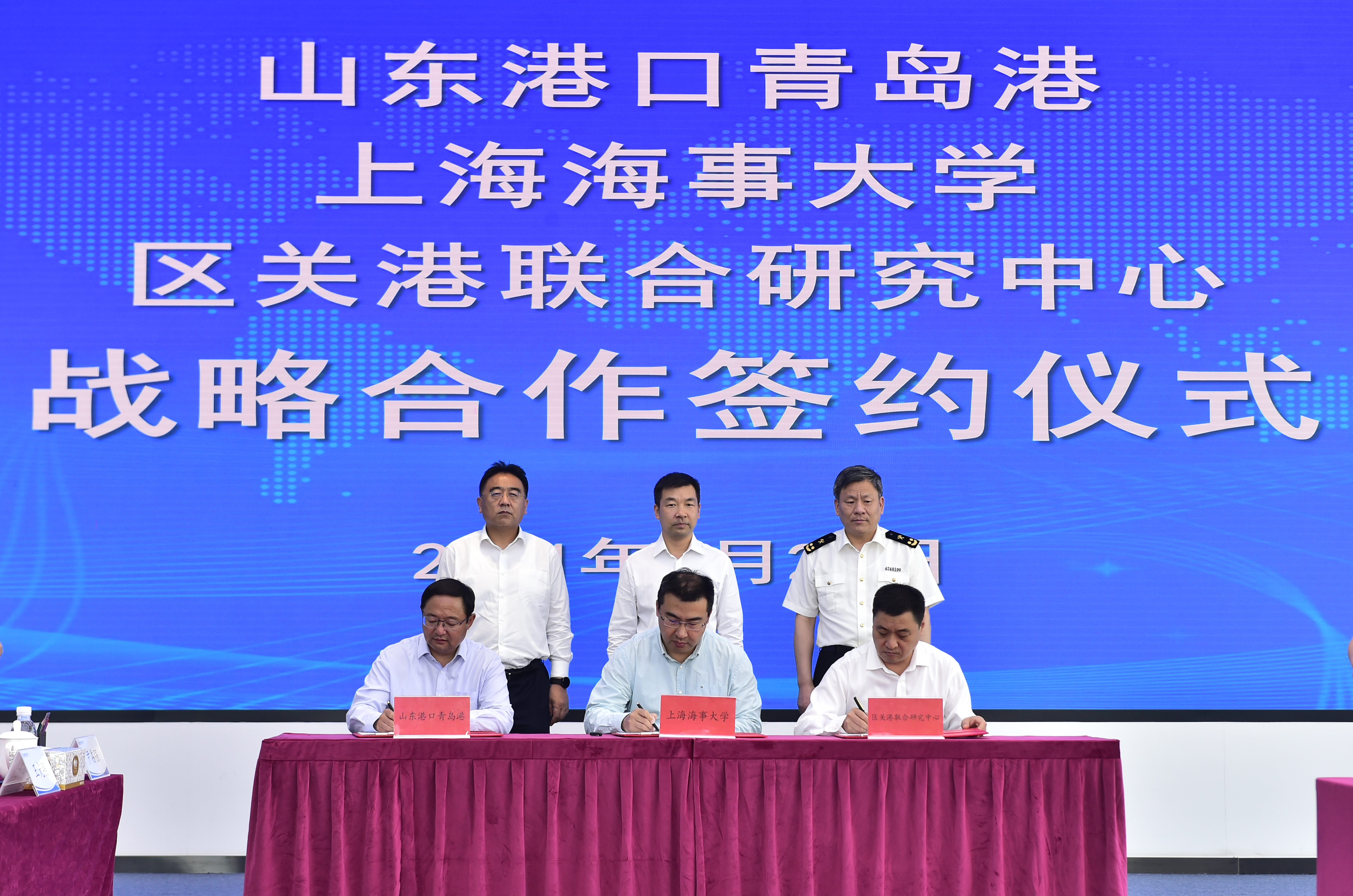 6月21日,学校与山东港口青岛港、区关港联合研究中心签署战略合作协议暨特聘博士生导师聘任仪式在山东港口青岛港举行。校党委副书记、副校长李志鹏,山东省港口集团党委常委、副总经理、山东港口青岛港党委书记、董事长贾福宁,黄岛海关党委书记、关长冯仲良,青岛自贸片区管委会副主任郭宝存,山东省港口集团高级别专家、“连钢创新团队”带头人张连钢等出席活动。