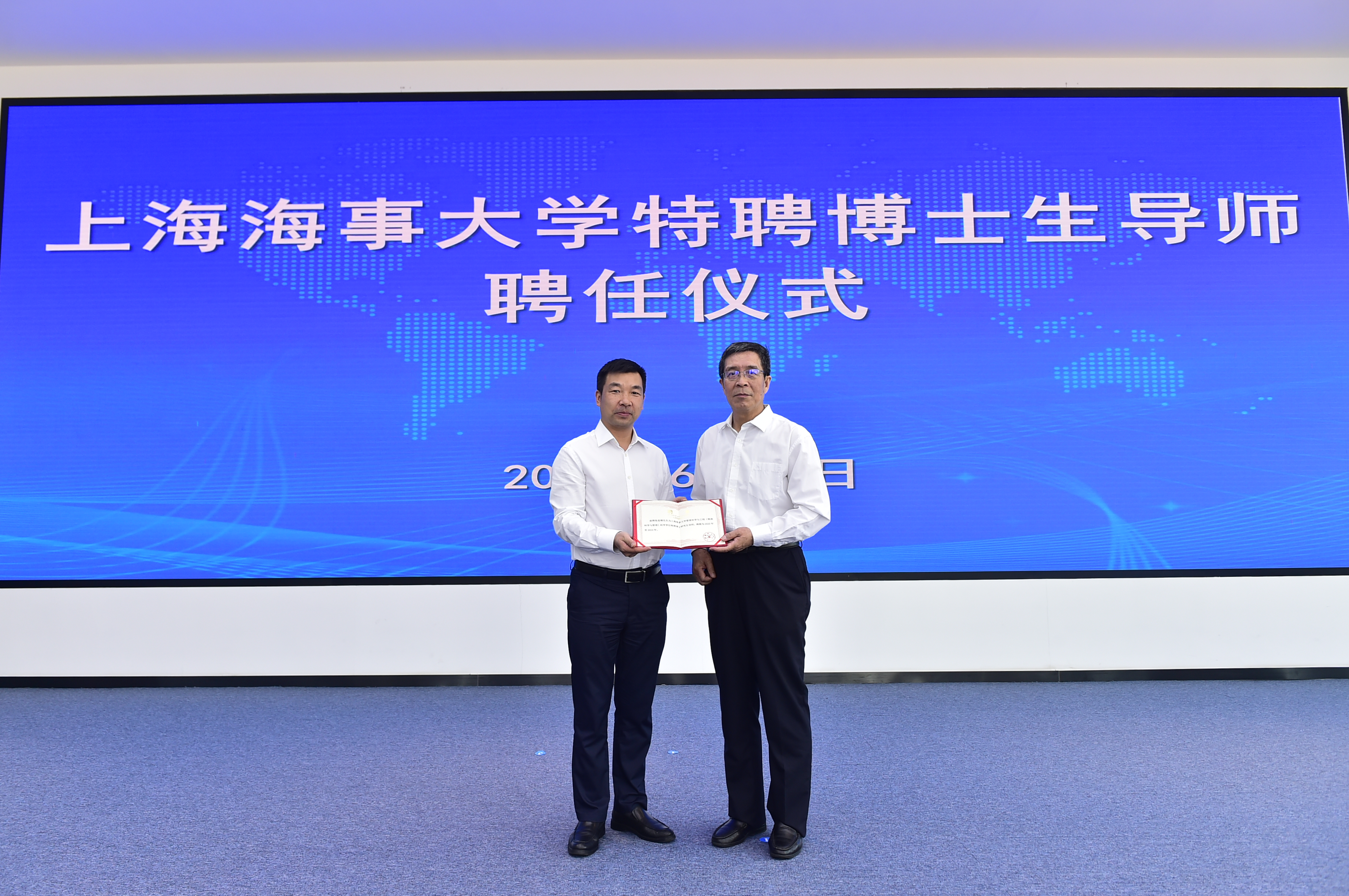 聘任仪式上,学校聘任时代楷模青岛港集团 “连钢创新团队”的带头人张连钢担任特聘博士生导师,李志鹏副书记为其颁发聘书。