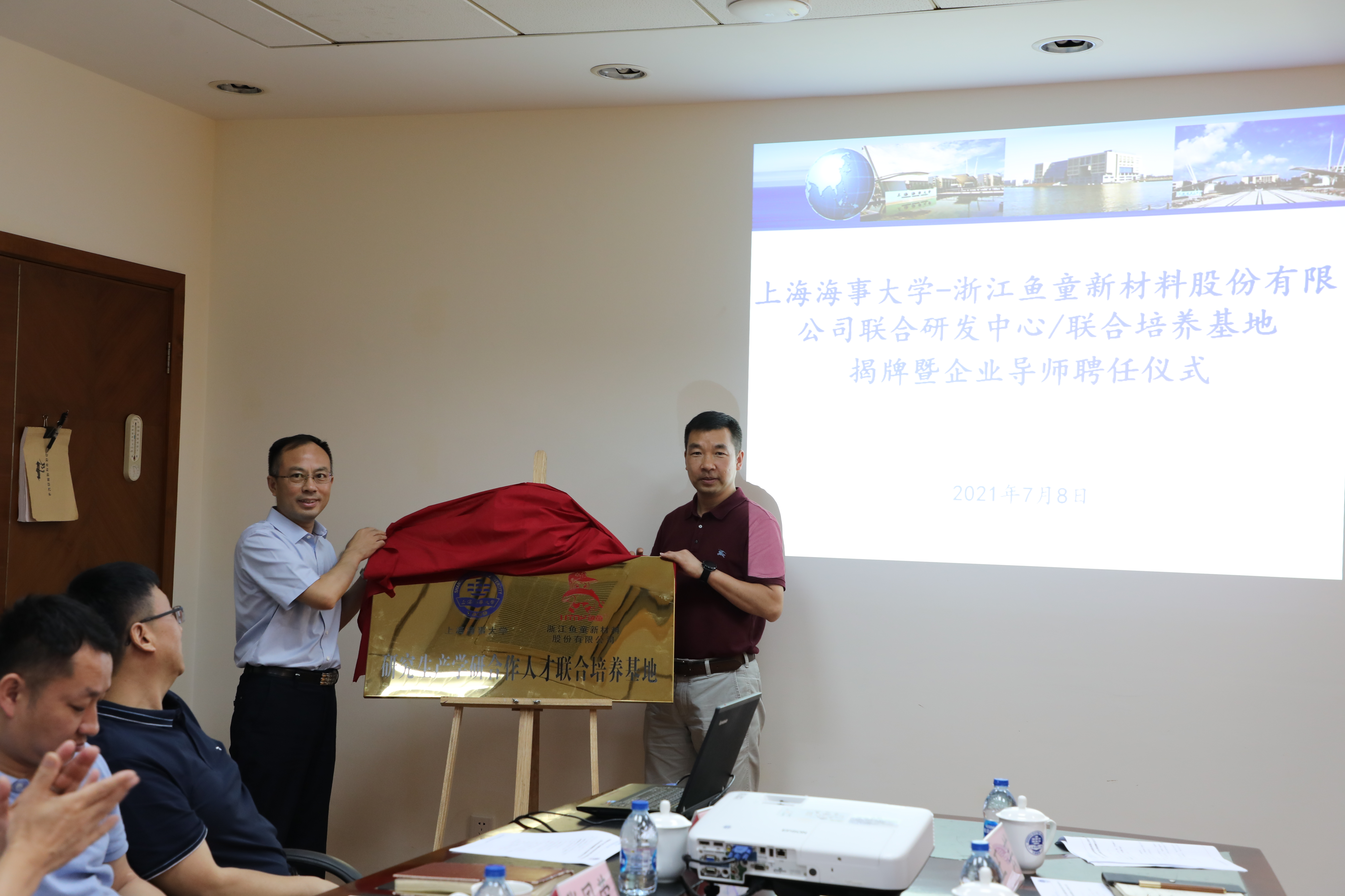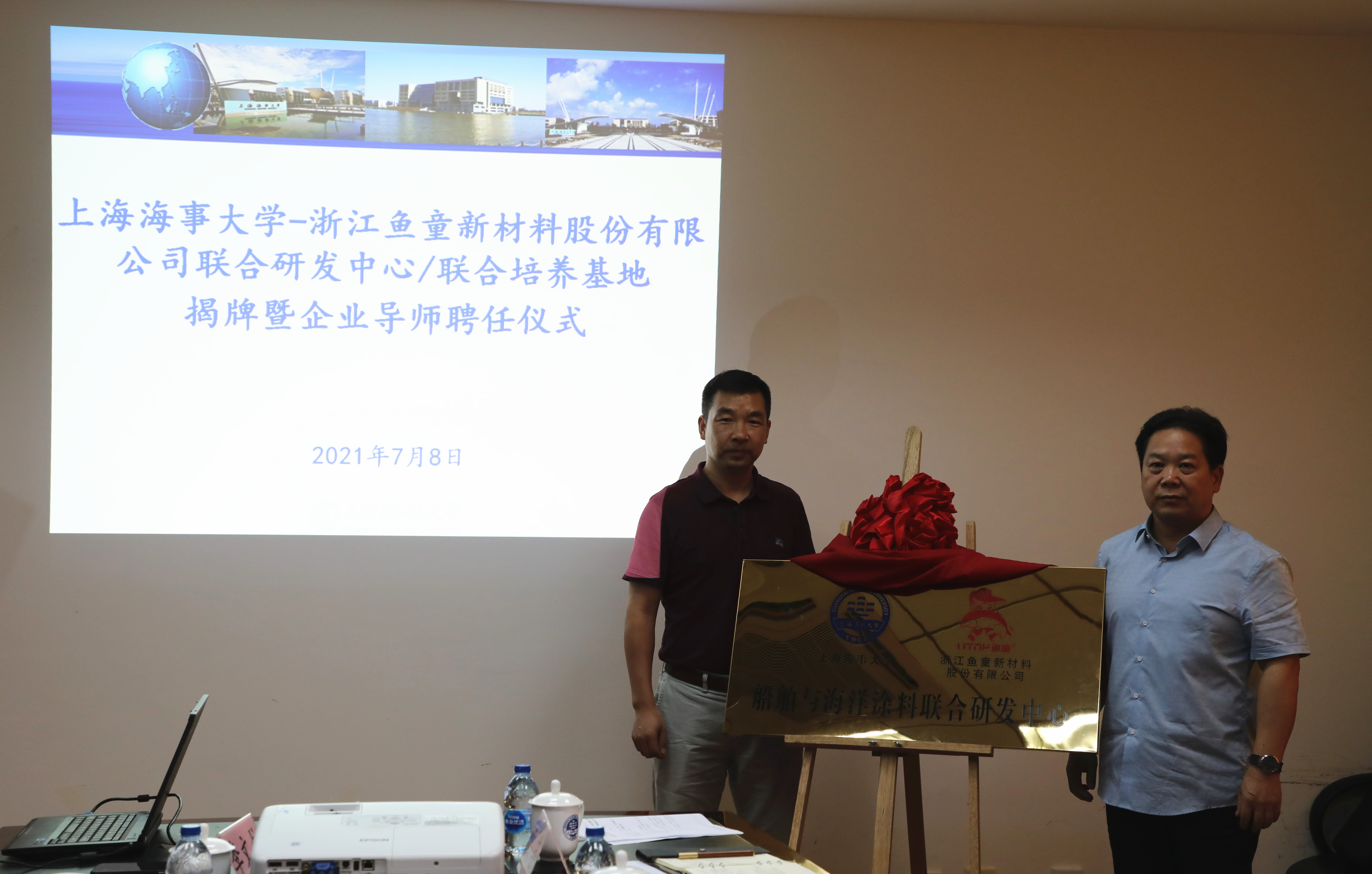 7月8号上午,上海海事大学-浙江鱼童新材料股份有限公司“船舶与海洋涂料联合研发中心”及“研究生产学研合作人才联合培养基地”揭牌仪式举行。校长陆靖,校党委副书记、副校长李志鹏,中国涂料工业协会副会长赵君,浙江鱼童新材料股份有限公司董事长梁新方、总经理杨亚良出席,学校相关部门、学院负责人参加相关活动。