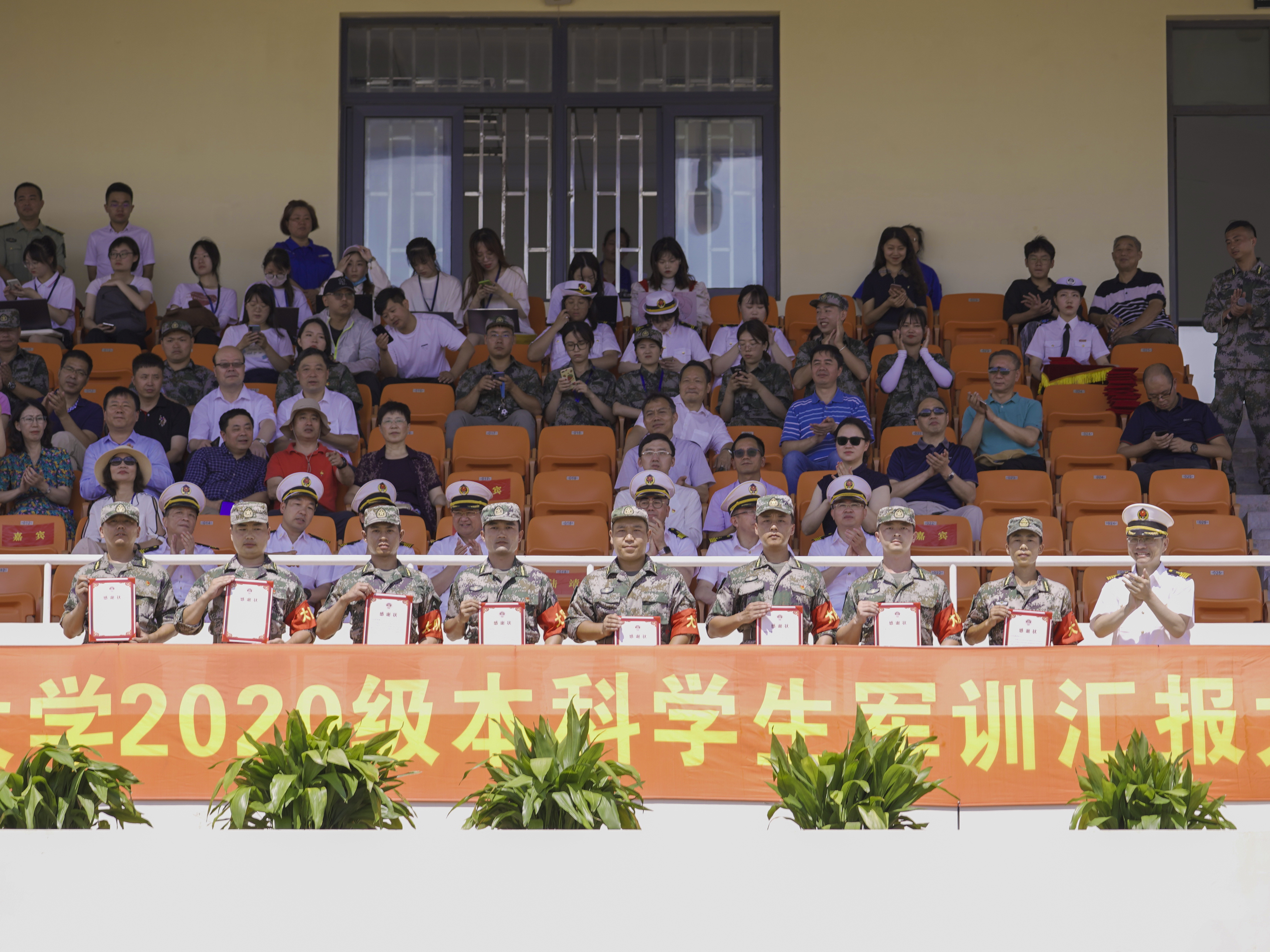 7月17日上午,学校2020级本科学生军训汇报大会在体育场举行。全体校领导宋宝儒、陆靖、贺莉、严大龙、李志鹏、施欣、严伟、栗建华出席,学校各学院、职能部门负责人,2020级学生辅导员、参训教官和2020级全体本科学生参加了汇报大会。