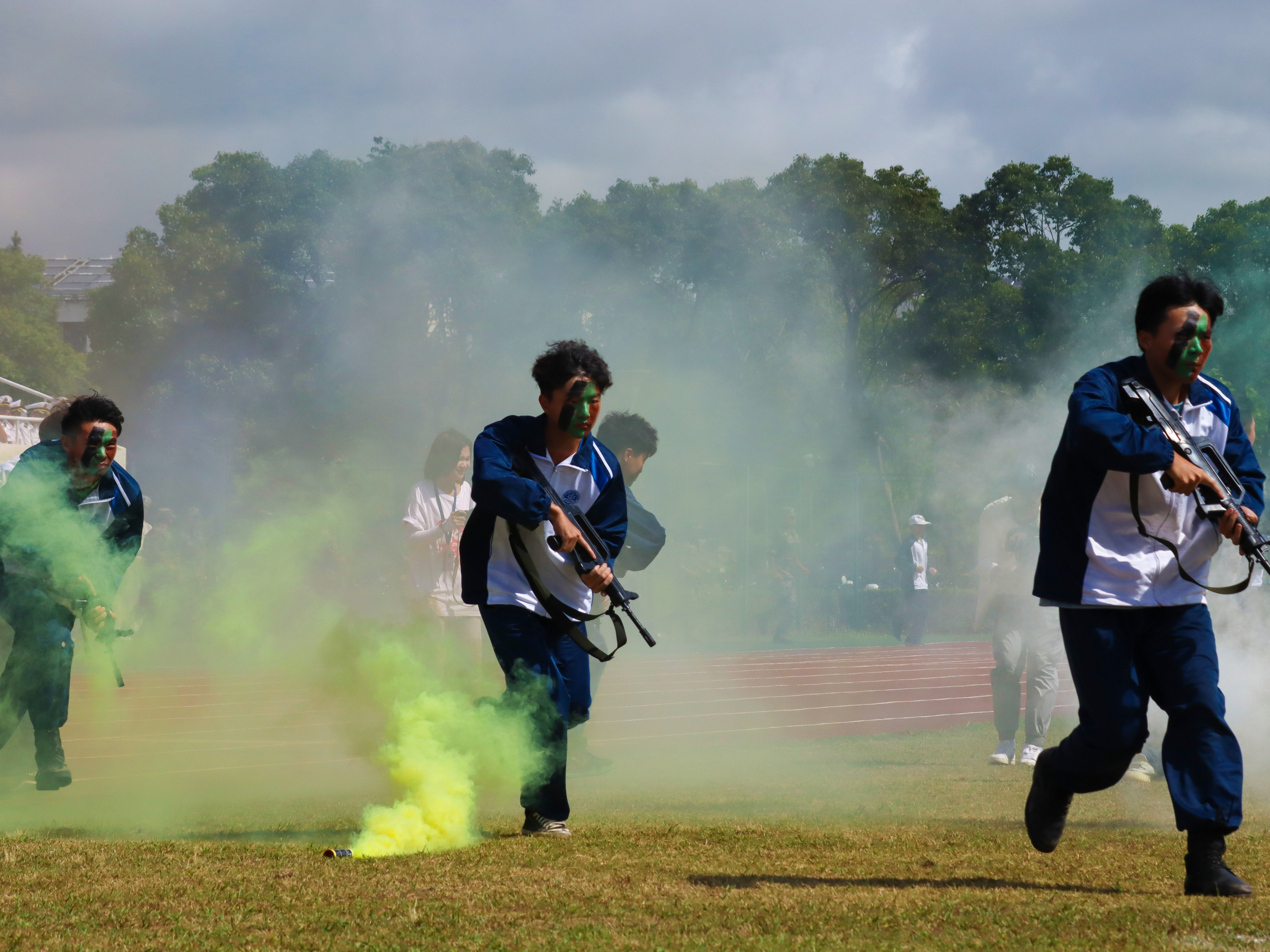庄严的升国旗仪式后,军事技能成果展示方队为大家呈献了舞旗、建党百年摆字、战术演练和格斗擒拿等精彩节目,赢得了阵阵掌声和喝彩。