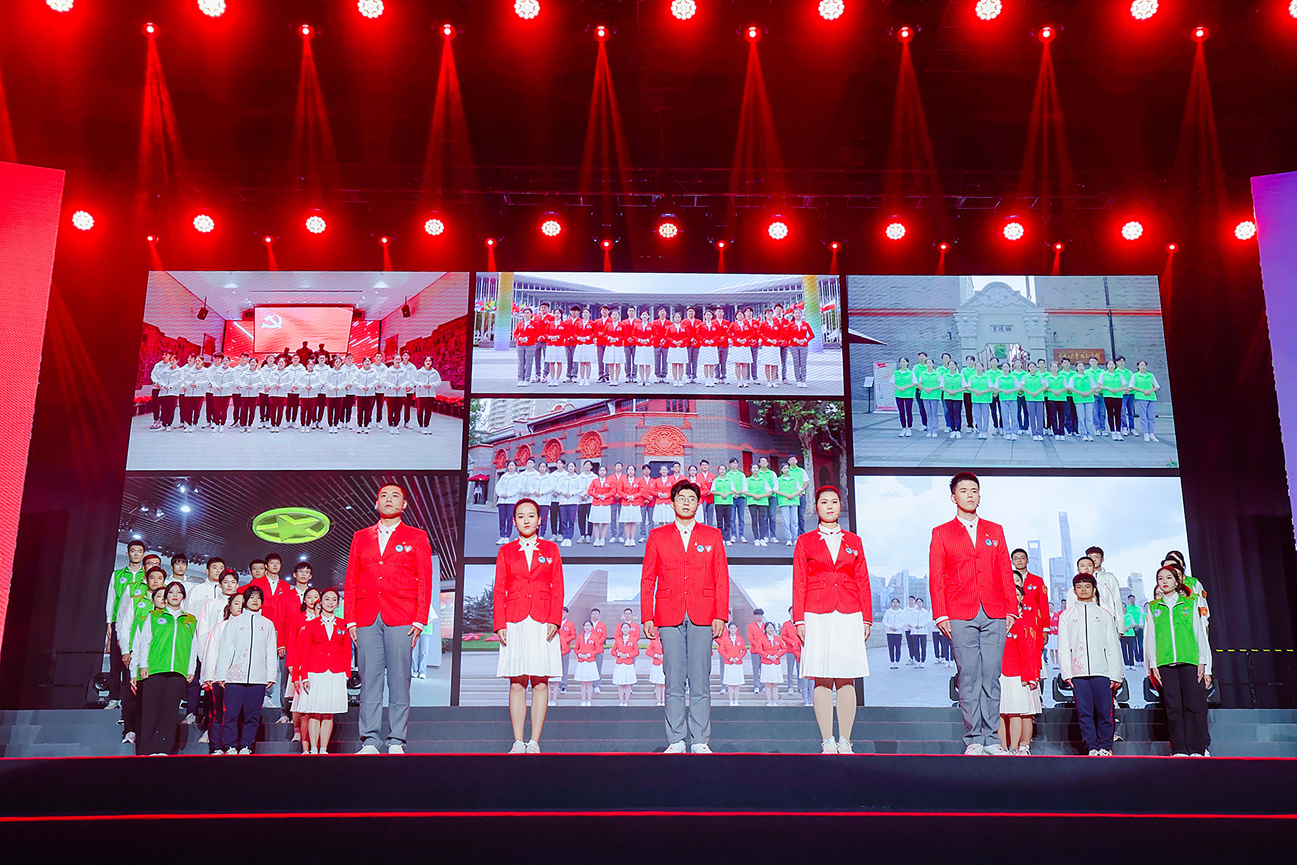 宣誓仪式上,上海市政府副秘书长、进博会城市服务保障领导小组志愿者服务保障组组长赵祝平为第四届进博会志愿者总队授旗。团市委书记、直属机关党委书记、市青联主席上官剑,市市级机关工作党委副书记李云龙为进博会党、团员先锋岗志愿者代表颁发先锋岗旗帜。中国国际进口博览局副局长、国家会展中心党委书记刘福学致辞。