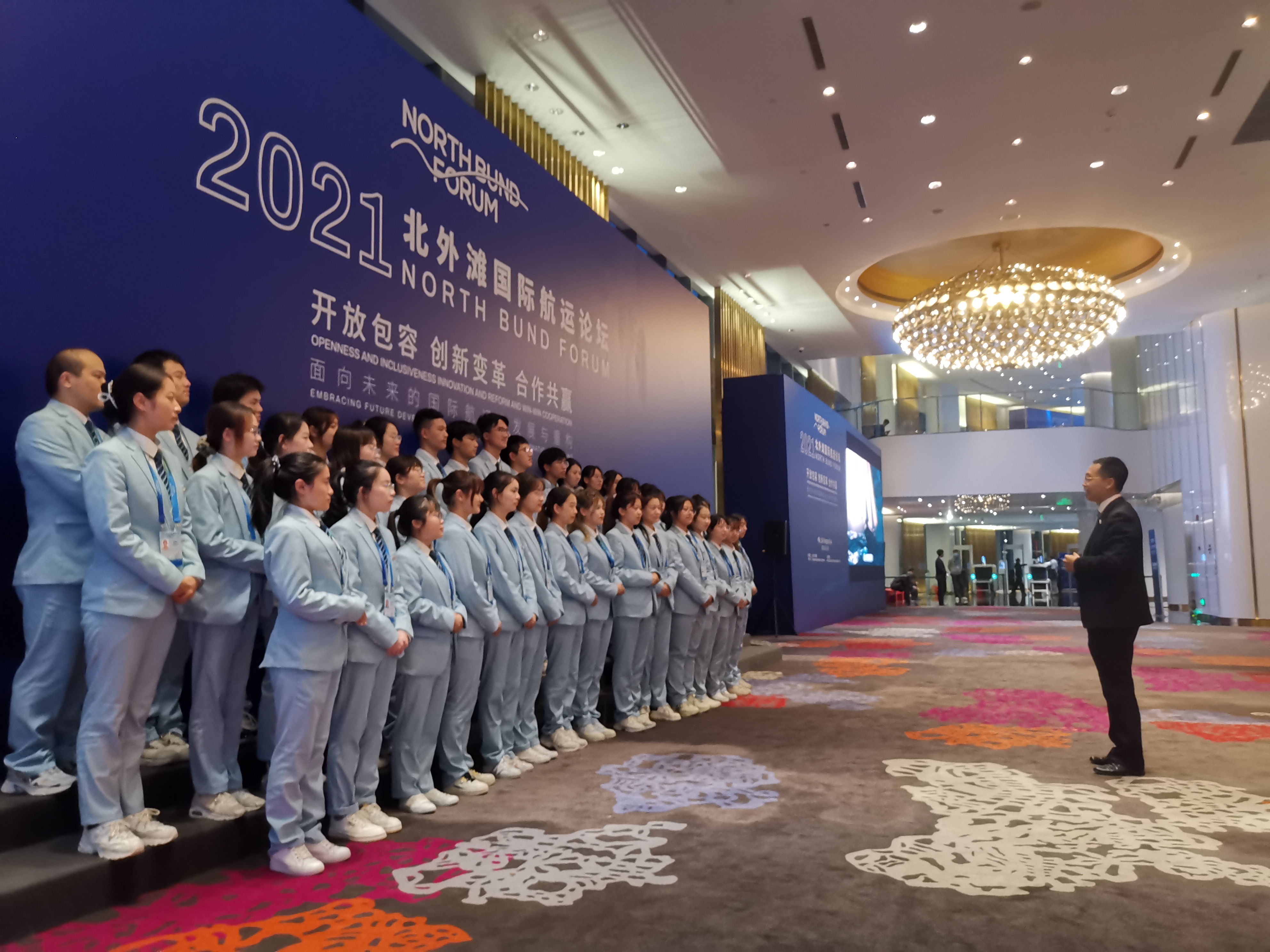 11月3日至11月5日,2021北外滩国际航运论坛在沪召开,学校50名志愿者参与服务。