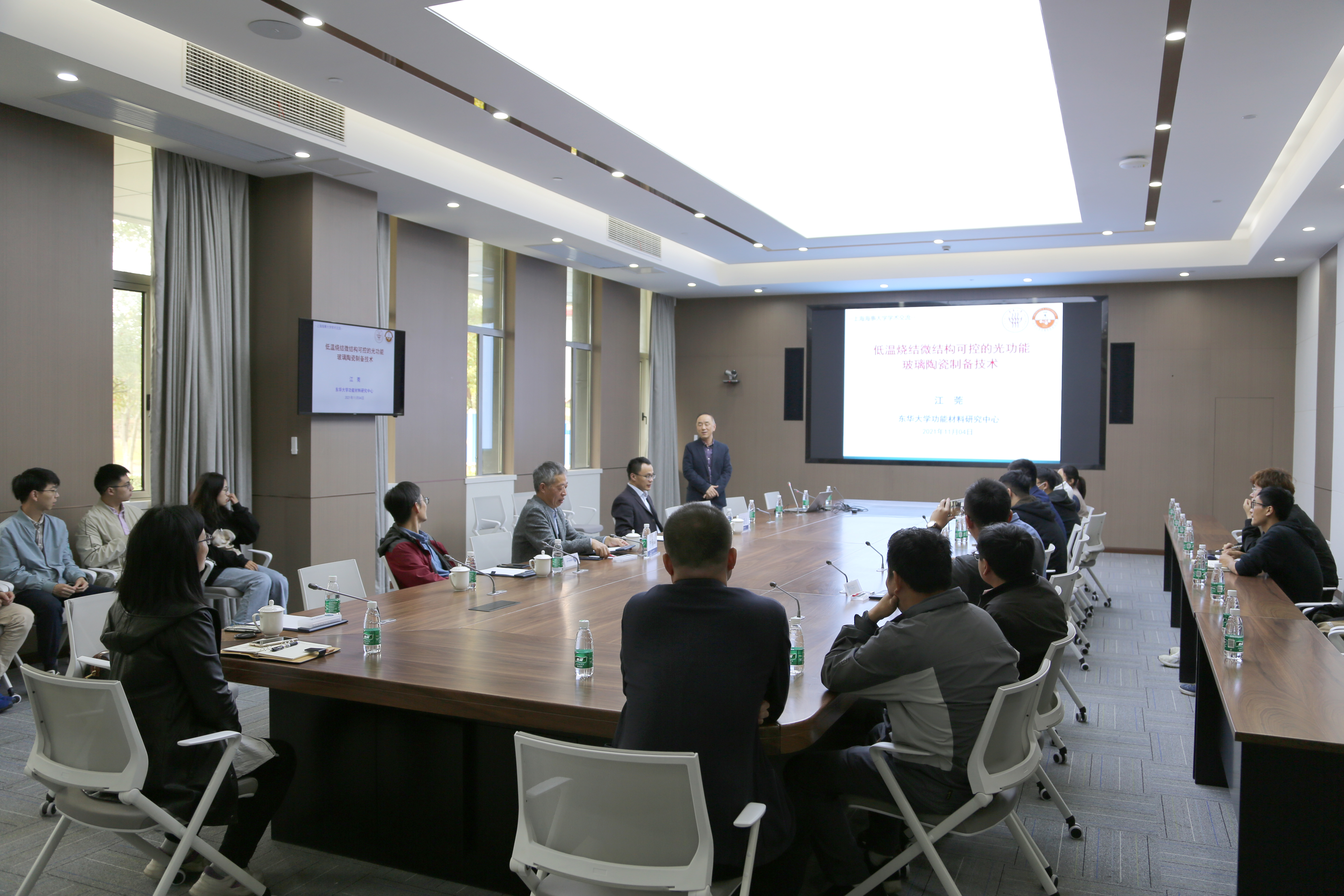 江莞教授介绍了陶瓷材料在光功能、耐磨耐蚀等方面的优异性,指出陶瓷材料高温烧结会致使晶粒长大从而影响材料的力学性能和功能化质量,重点讲解了如何将功能基元导入高能态介孔粉体的设计、合成和低温制备,以获得微结构可控、高质量的功能陶瓷。
