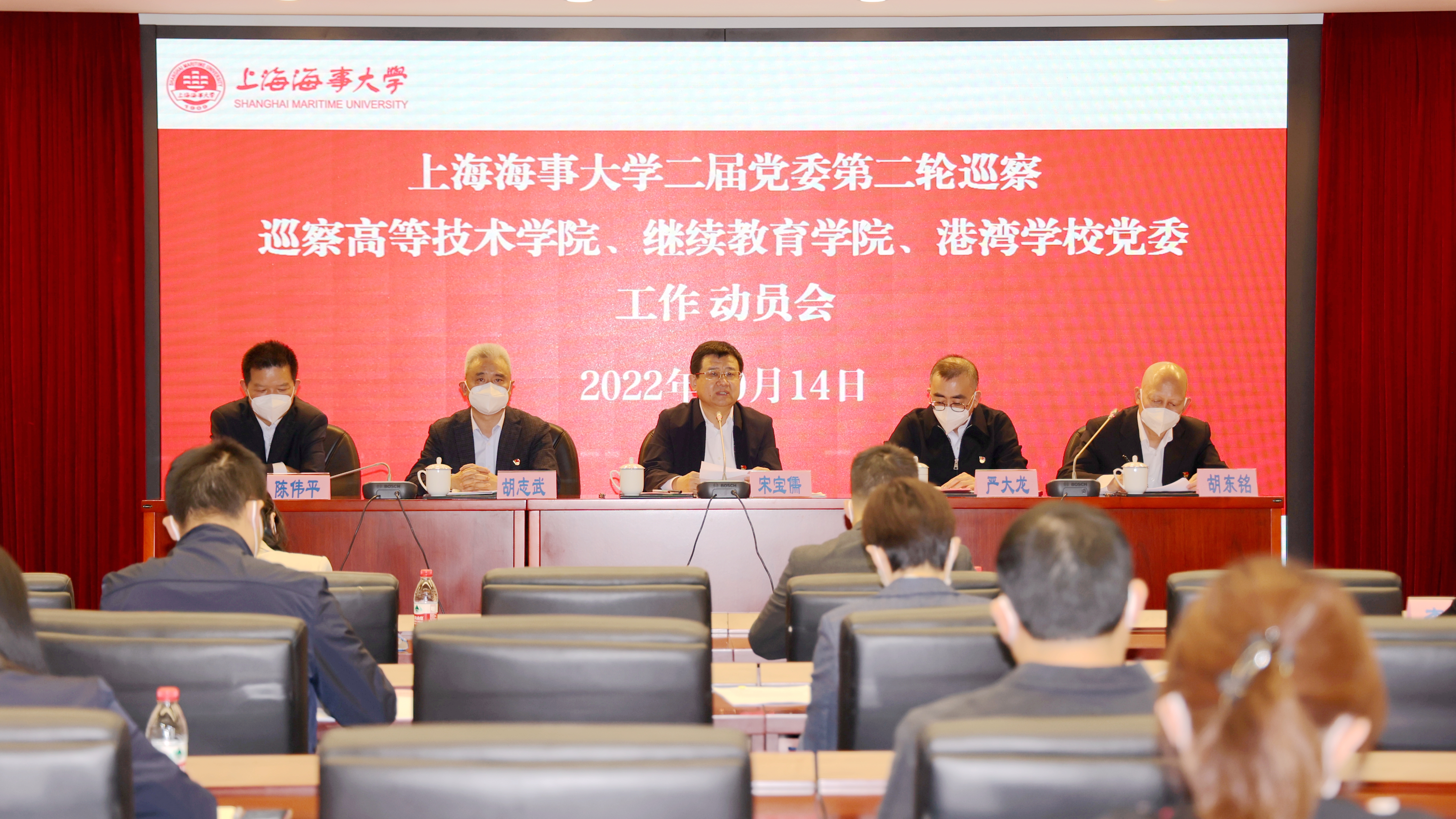 10月14日、19日,巡察外国语学院党委,高等技术学院、继续教育学院、上海港湾学校党委,物流工程学院党委,海洋科学与工程学院党委等四个二级单位党组织工作动员会相继召开,标志着学校二届党委第二轮巡察工作全面启动。校党委书记、巡察工作领导小组组长宋宝儒出席会议并做动员讲话。