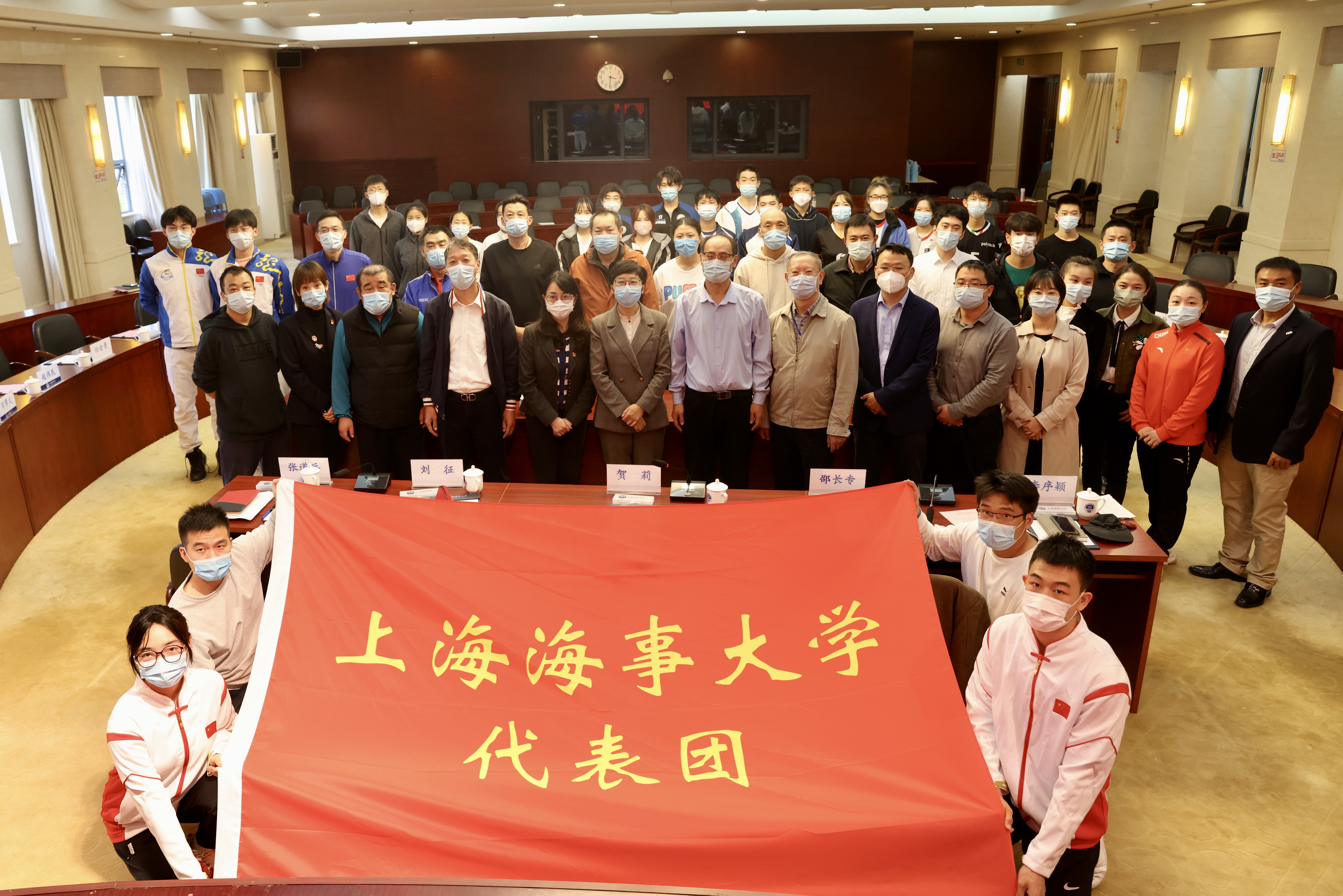 11月9日,上海市第十七届运动会上海海事大学代表团成立大会在行政楼128会议室举行,校党委副书记贺莉出席,校工会、学生处、体育教学部相关负责人及各运动队教练员、运动员代表参会。