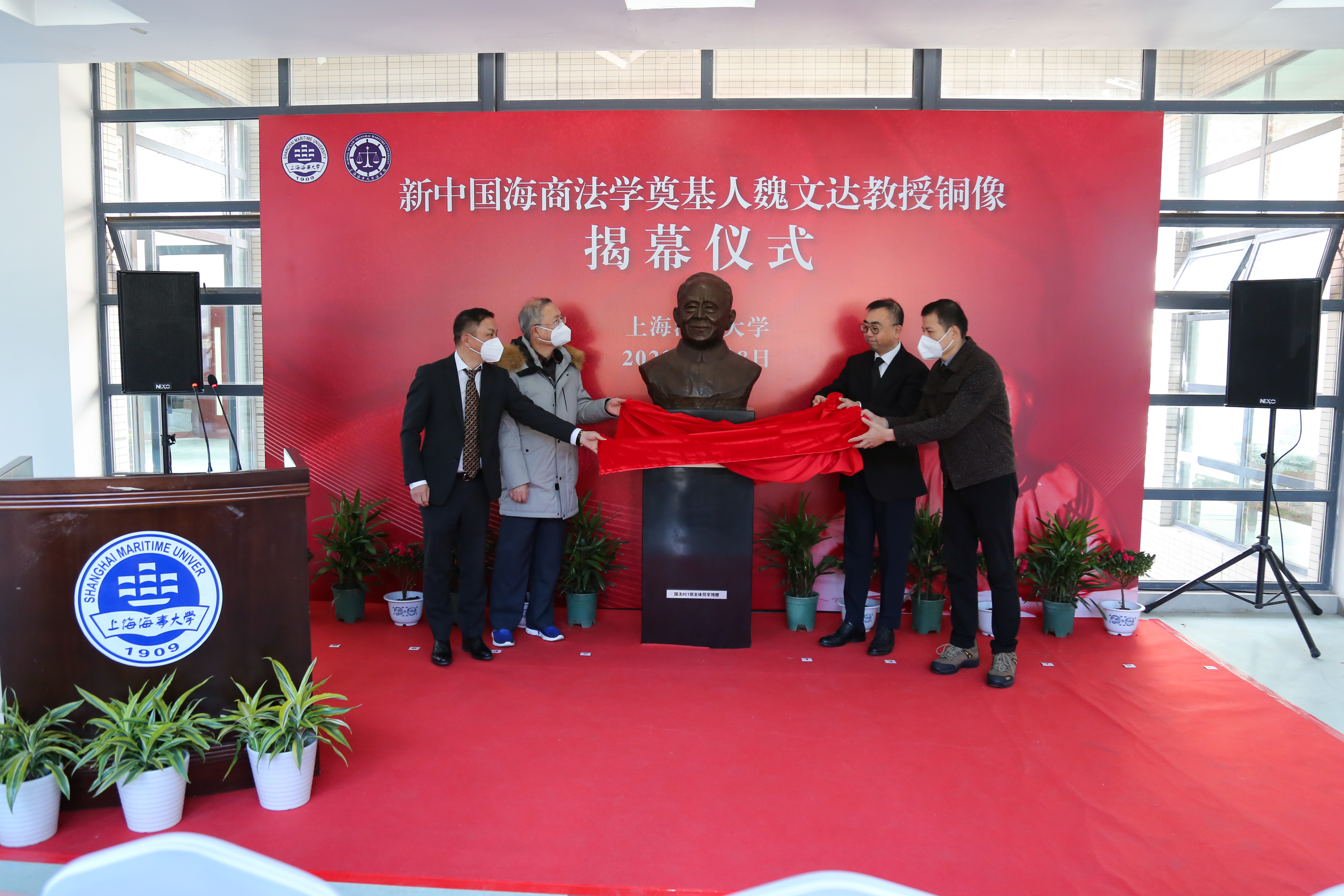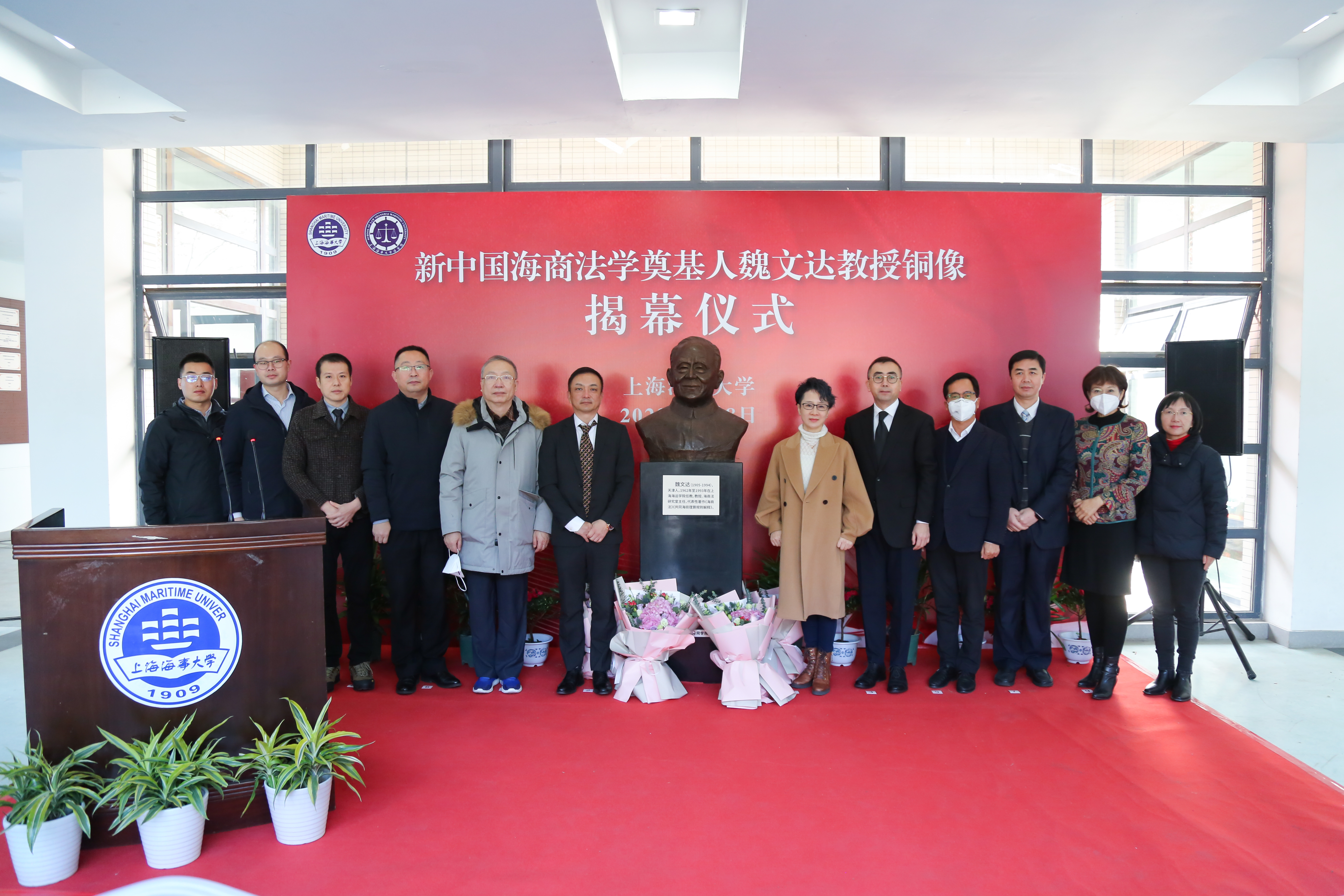 为深切缅怀魏文达教授在培养航运法治人才方面所做出的杰出贡献,1月8日上午,学校举行魏文达教授铜像揭幕仪式。校党委副书记、纪委书记严大龙,国际经济法1985级校友代表、天泰货柜有限公司副总裁李杰,国际经济法1985级校友代表、宏富国际货运代理(上海)有限公司总经理许祖勤,魏文达教授学生代表、法学院原院长蒋正雄出席,相关职能部门和学院负责人、法学院师生代表共40余人参加活动。魏文达教授之子魏友宏先生线上参加仪式。