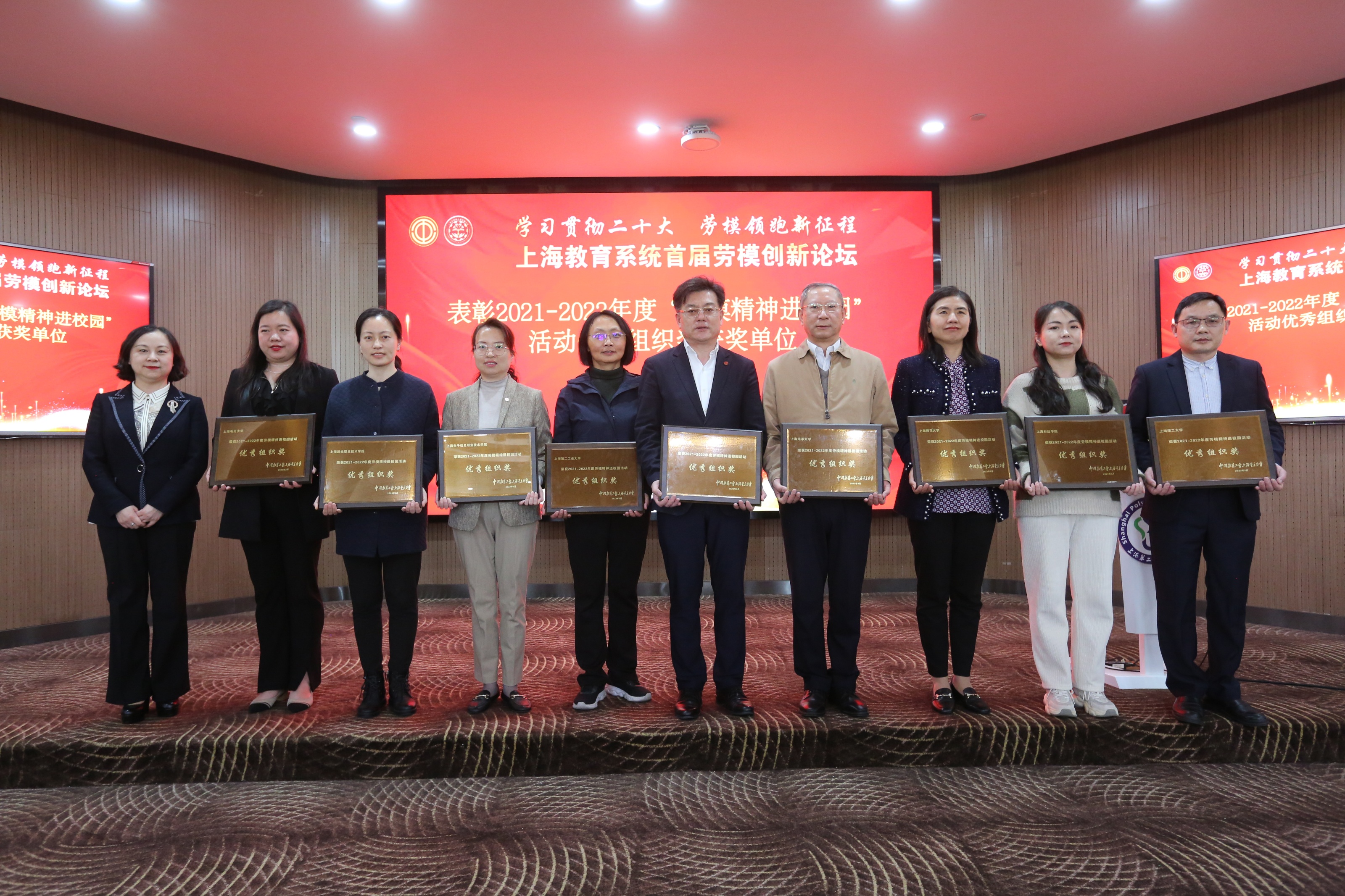 4月7日下午,以“学习贯彻二十大 劳模领跑新征程”为主题的上海教育系统首届劳模创新论坛在上海第二工业大学举行。30多位上海教育系统“劳模创新工作室”劳模代表以及各高校工会、各区教育工会(含中职联)、机关直属单位工会负责人等出席论坛。学校被授予2021-2022年度“劳模精神进校园”活动优秀组织奖。