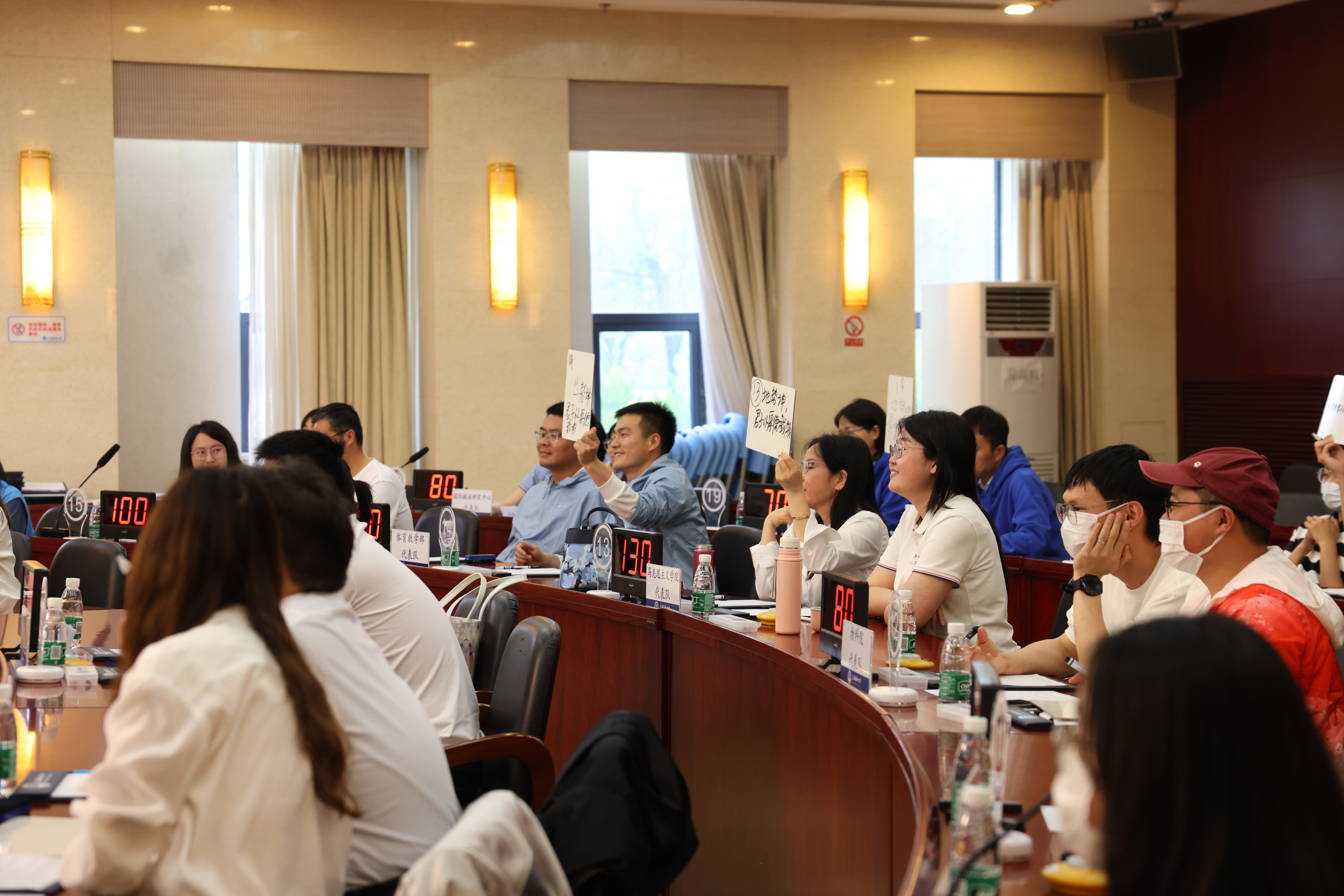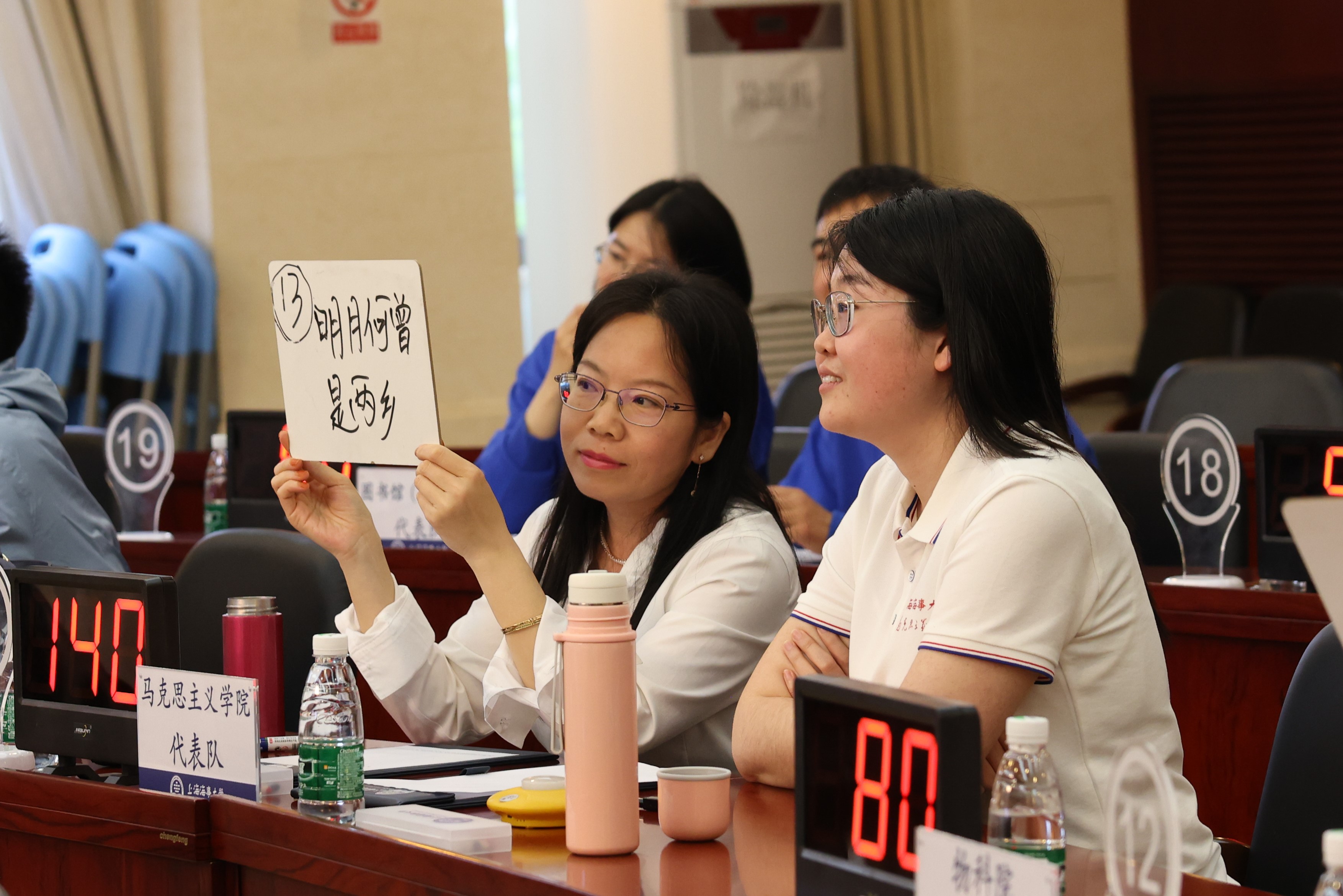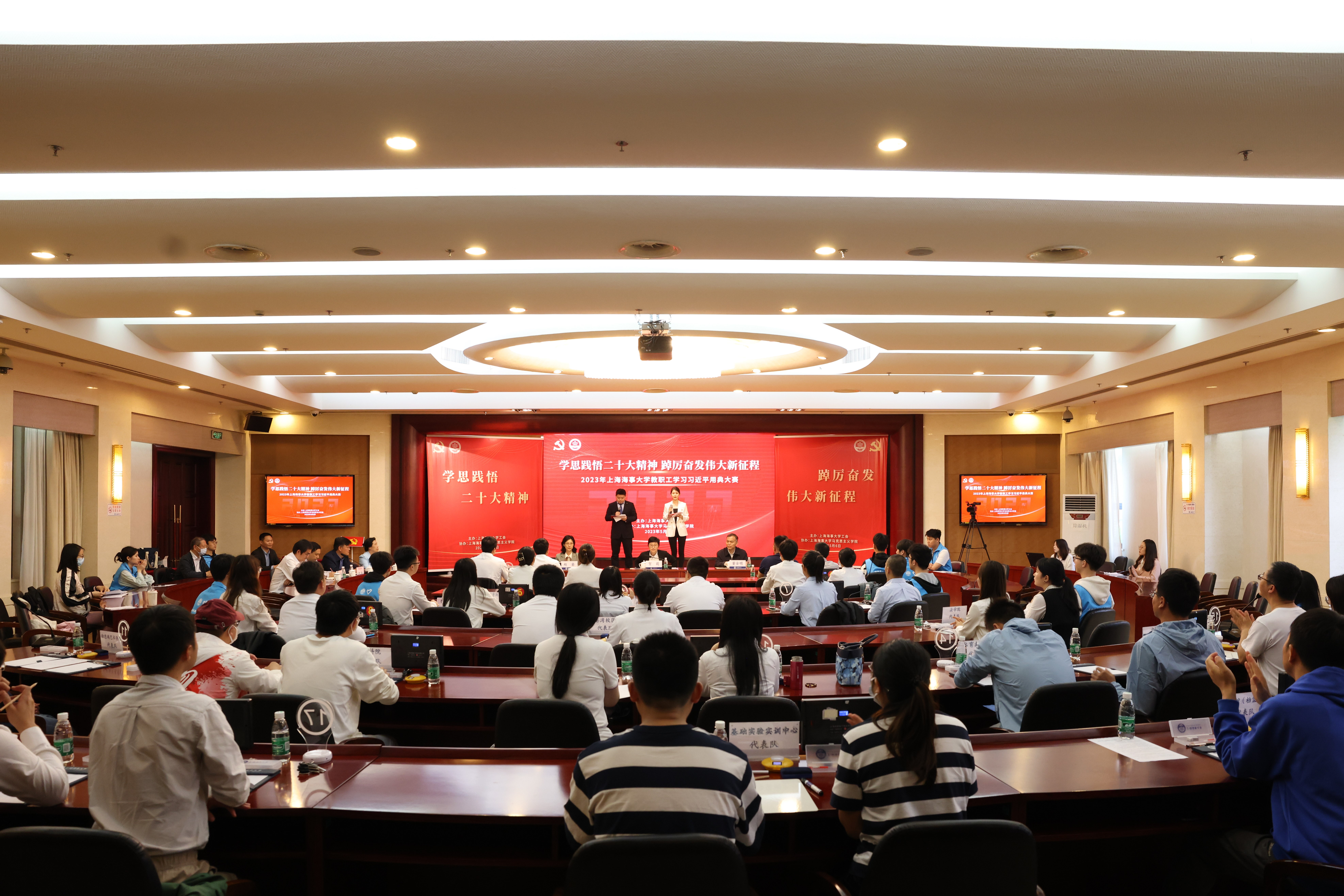 用典大赛现场气氛热烈而庄重,选手们全神贯注、认真思索、积极回答,以昂扬的斗志、饱满的热情投入到比赛中。经过激烈的必答、抢答和加赛环节,最终角逐出马克思主义学院和后勤中心两支队伍代表学校参加上海市教育工会举办的2023年上海教工学习习近平用典大赛。