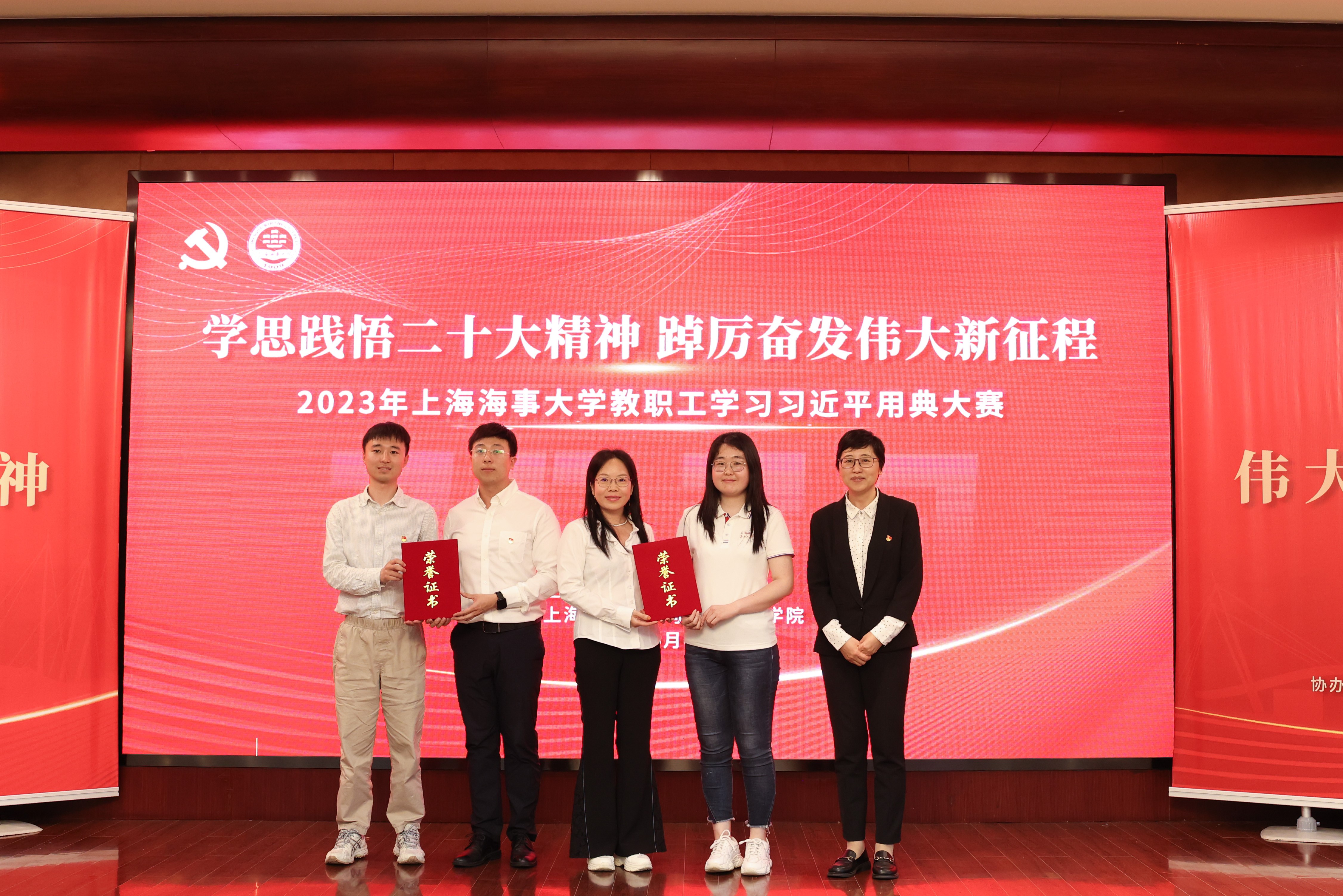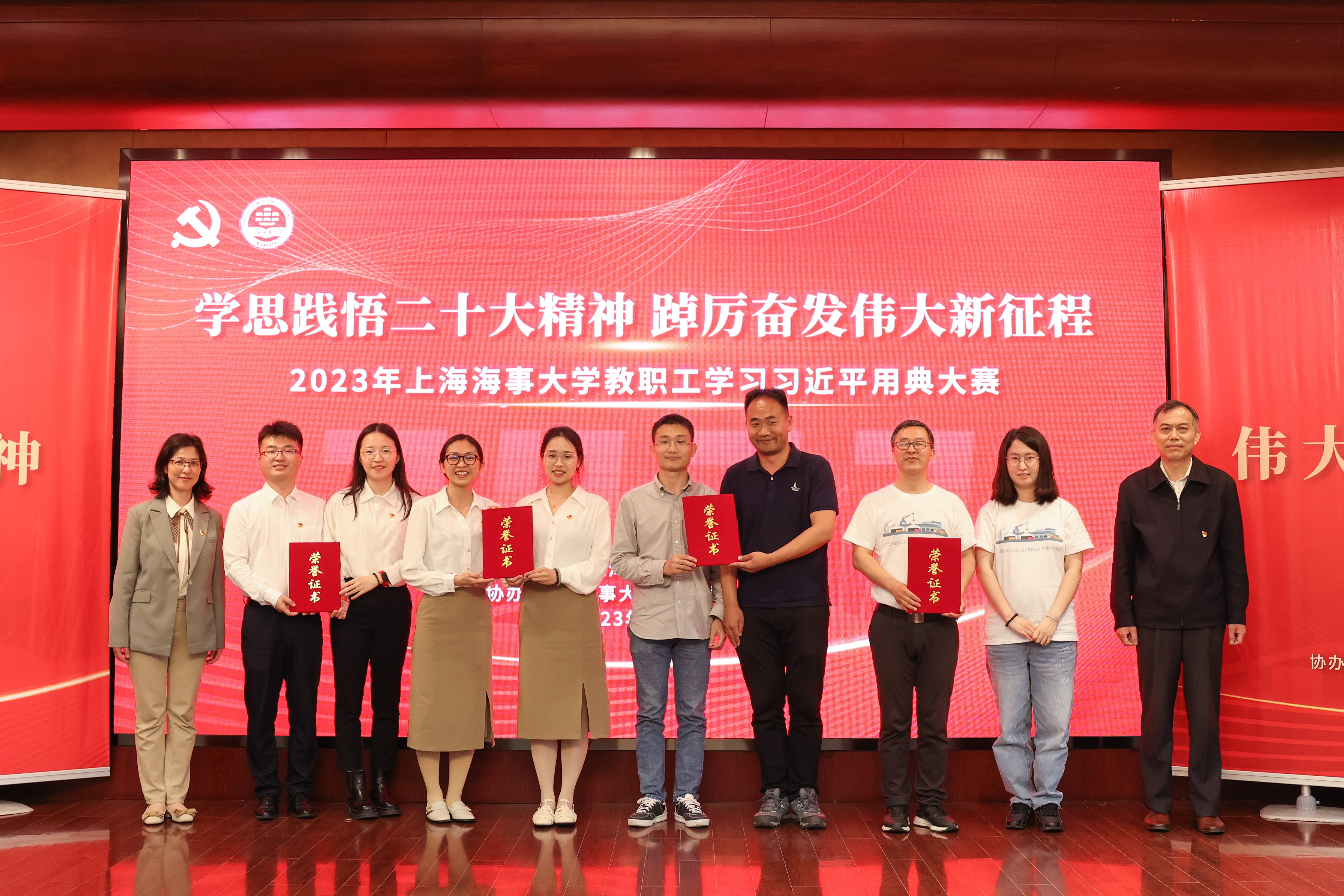 贺莉致开幕辞,她指出,马克思主义不仅深刻改变了世界,也深刻改变了中国,坚持和发展马克思主义,必须同中国具体实际相结合,必须同中华优秀传统文化相结合,习近平总书记在重要讲话文章中常常引经据典,生动传神,寓意深邃,极具启迪意义。她强调,各位老师要以本次比赛为契机,学深悟透二十大精神,汲取勇毅前行的精神力量,引领广大教职员工以昂扬奋斗的精神状态努力把建设具有全球影响力高水平海事大学的美好愿景变成现实图景,扎实推动学校高质量发展迈上新台阶。