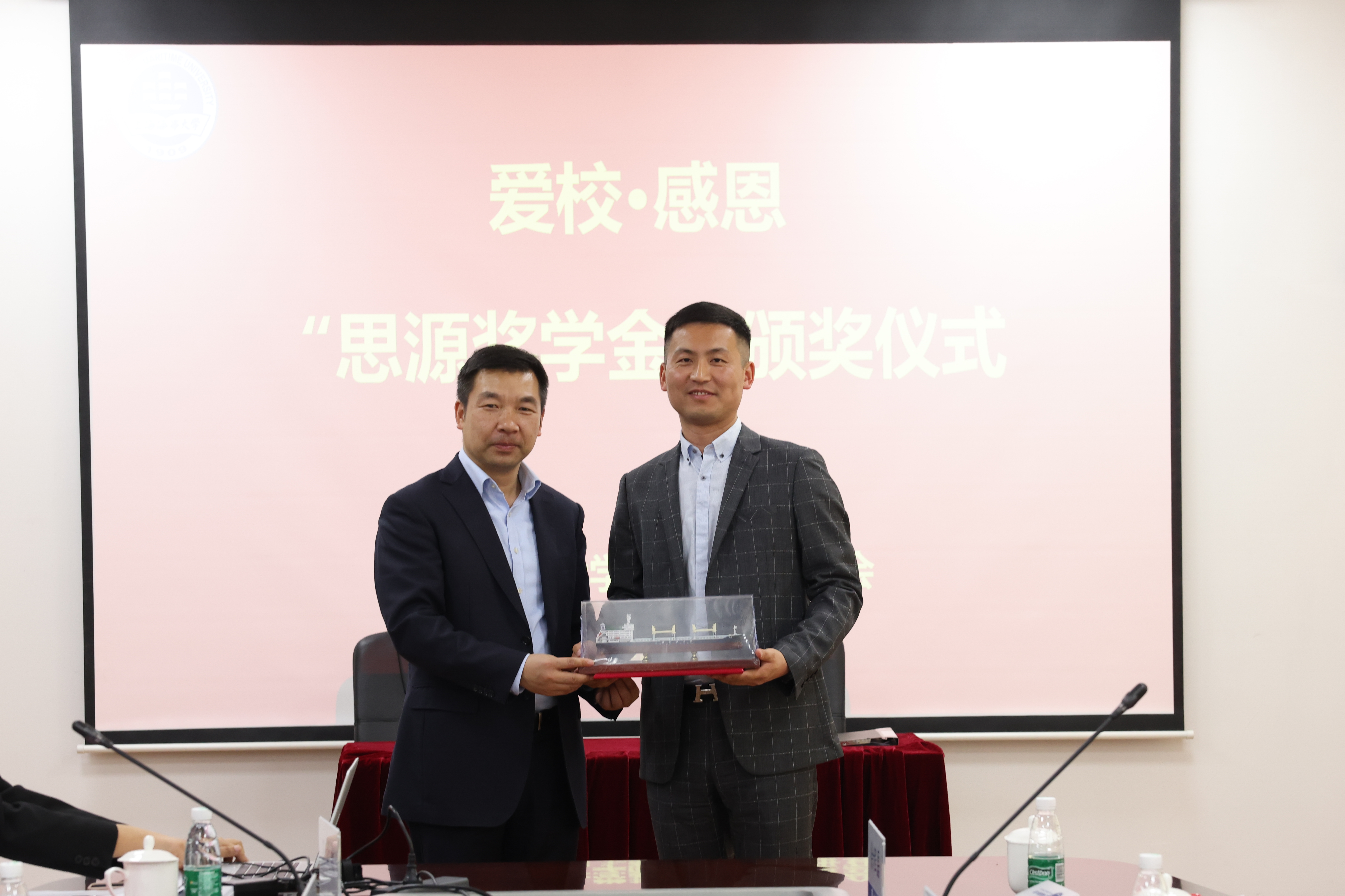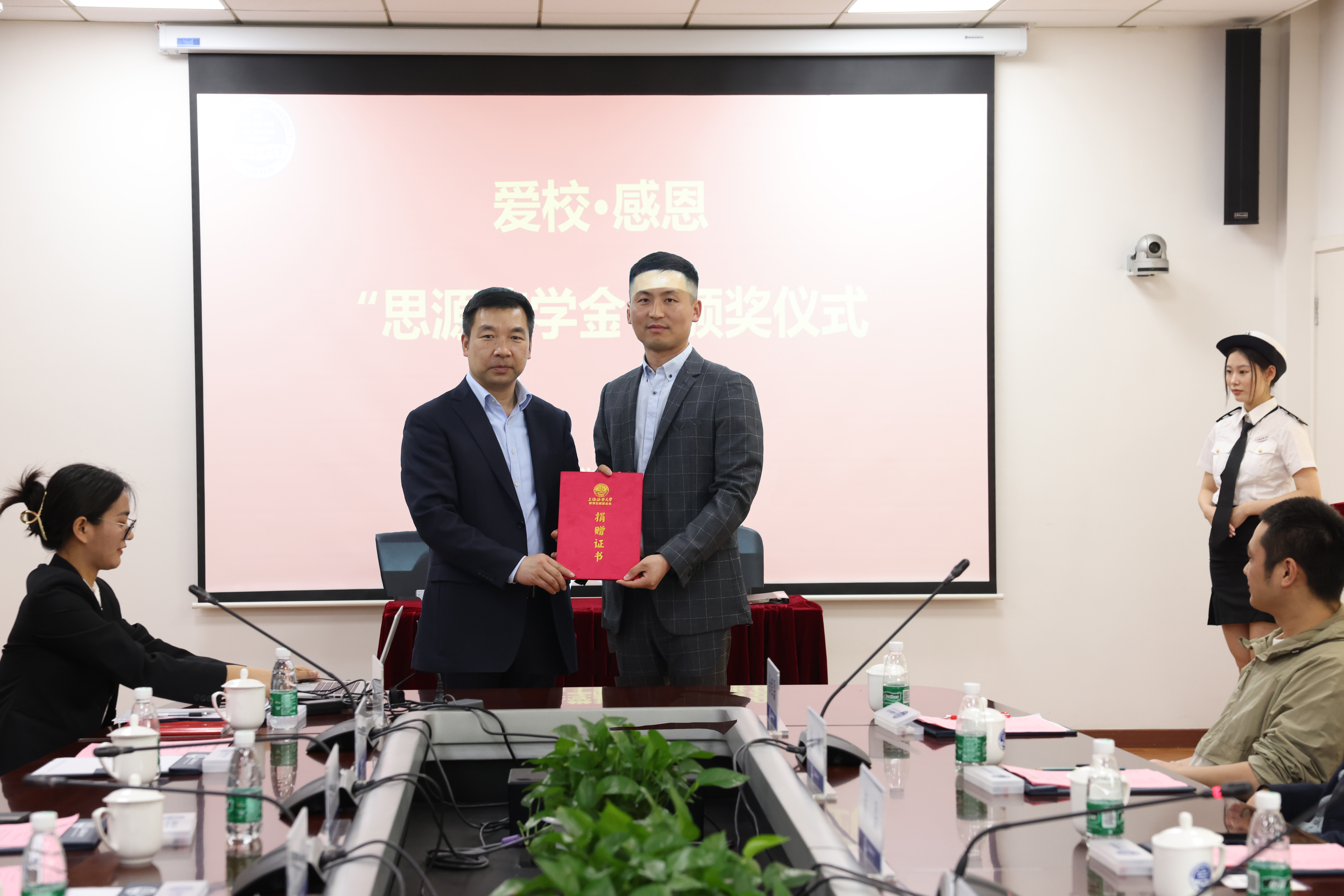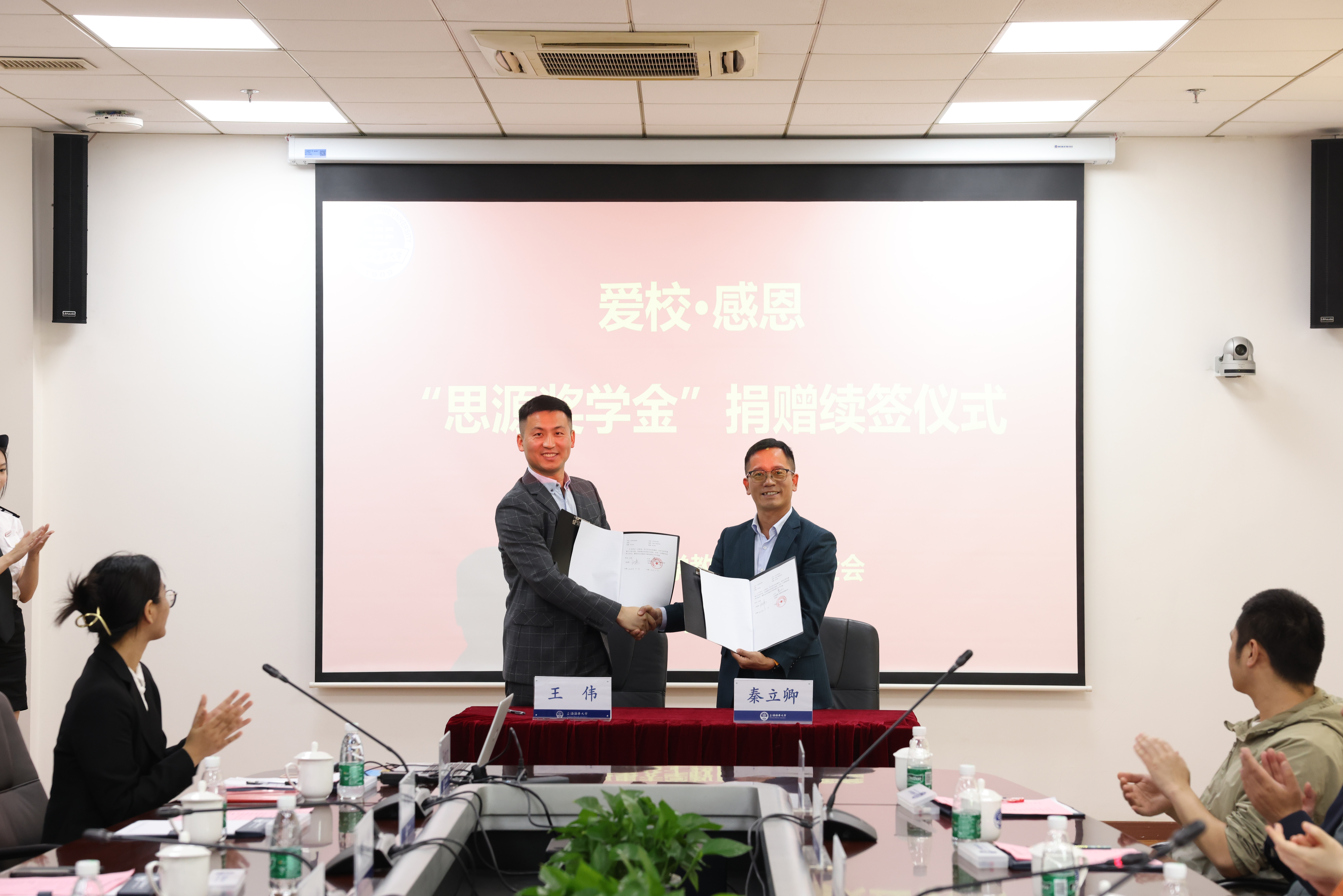 在与会嘉宾代表的共同见证下,校长办公室(校友联络处)主任秦立卿与王伟签署奖学金捐赠协议。随后,李志鹏与王伟一同为“思源奖学金”获奖学生颁发证书,李志鹏向王伟校友颁发奖学金捐赠证书。