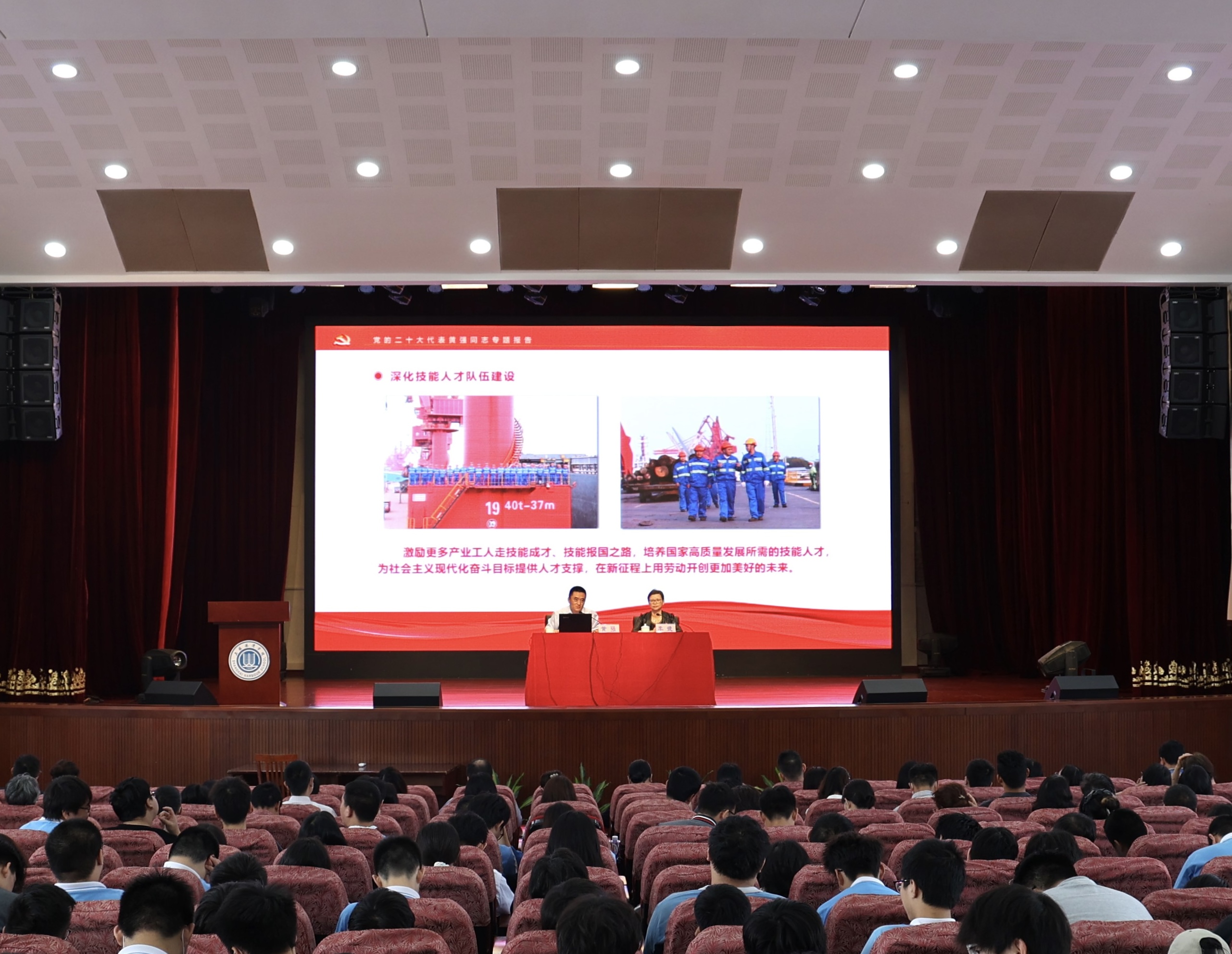 为推进学习贯彻习近平新时代中国特色社会主义思想主题教育走深走实,6月21日,党的二十大代表、全国劳模、港湾校友黄强应邀为学校港湾校区全体师生作“ 弘扬劳模精神,凝聚奋斗力量”专题辅导报告。