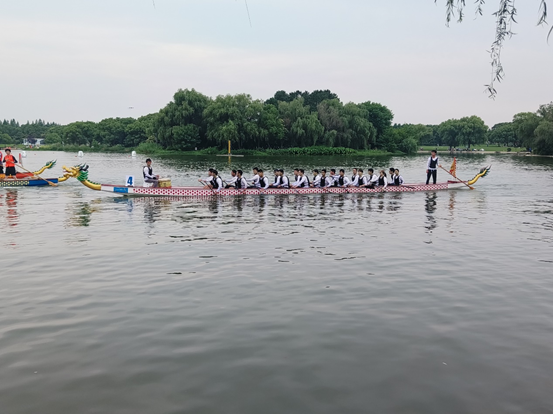 上午10点高校龙舟赛小组赛开始。经过第一轮的角逐,学校龙舟队从各个队伍中脱颖而出,获得小组第一。在下午的决赛中,队员们奋力拼搏,水中浪花翻飞,岸边喝彩连连。最终学校龙舟队以第2名获得了一等奖的好成绩。