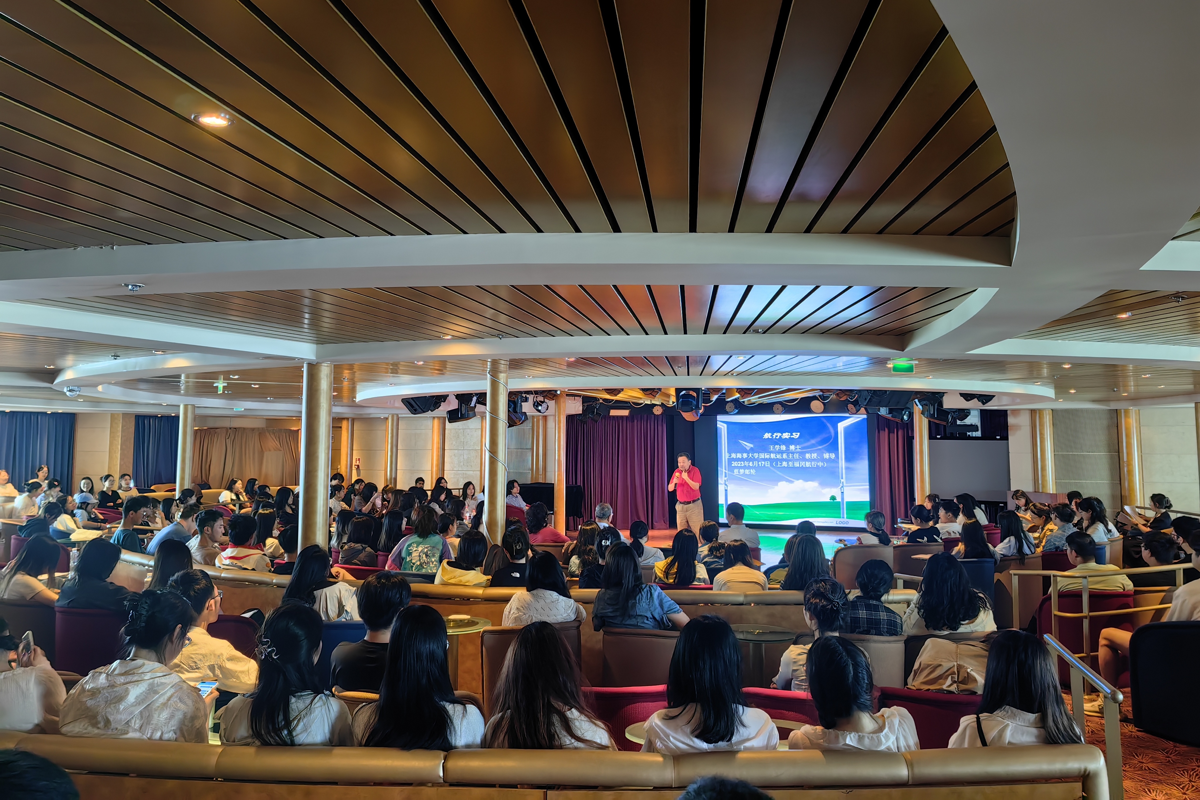 2023年6月,学校交通运输学院、经济管理学院、法学院共计633名师生,分两批次登上“蓝梦之星”号邮轮,往返于上海至日本福冈的航线,圆满完成航行实习任务。
