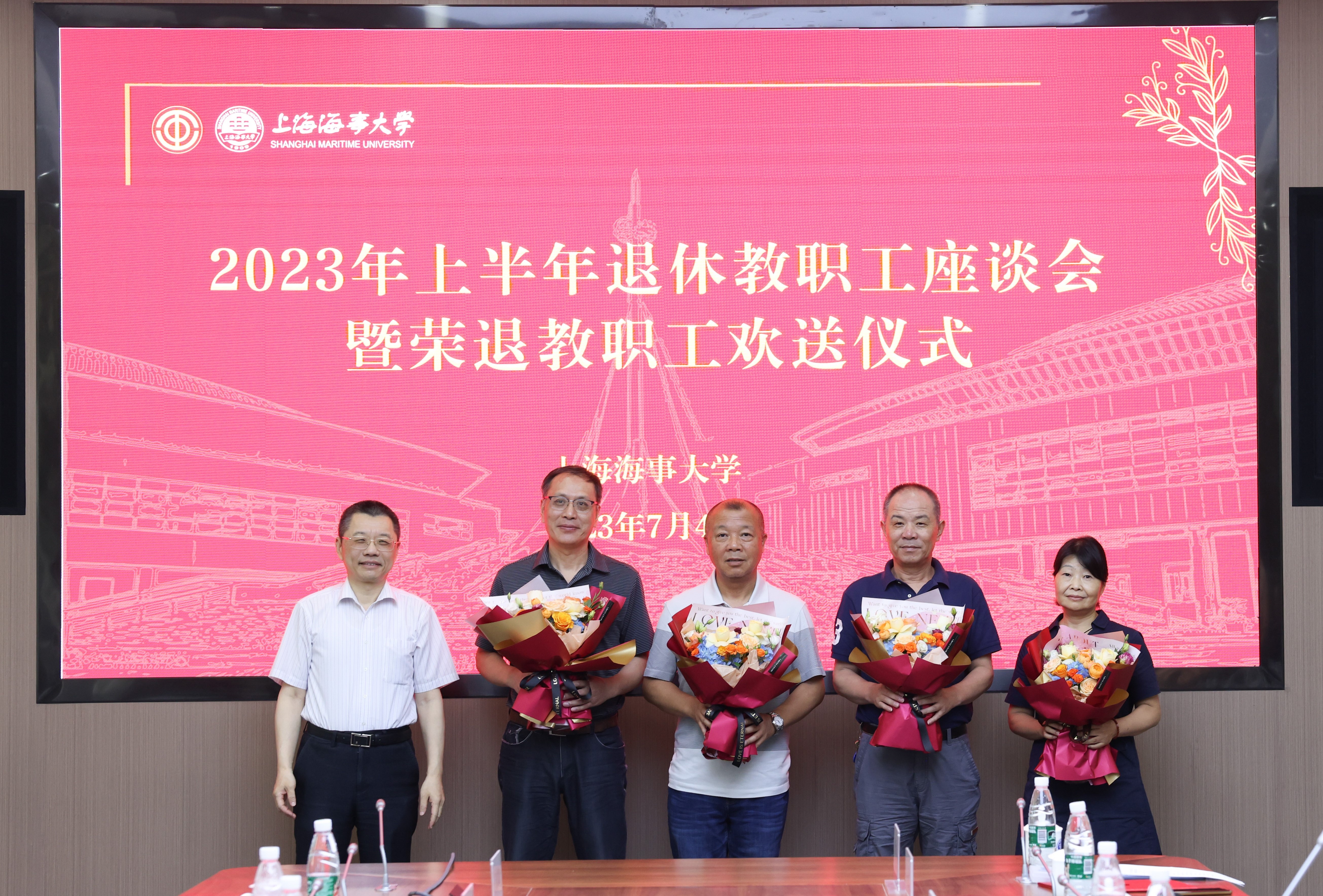 陆靖代表学校向各位退休教职工的辛勤付出表示衷心感谢,并向他们送上鲜花和祝福。他指出,当前学校的发展充满机遇但也面临很多挑战,希望退休教职工继续关心和支持学校发展,多关怀青年教师成长,让学校可以紧紧抓住上海国际航运中心和上海自贸区临港新片区建设的发展机遇。