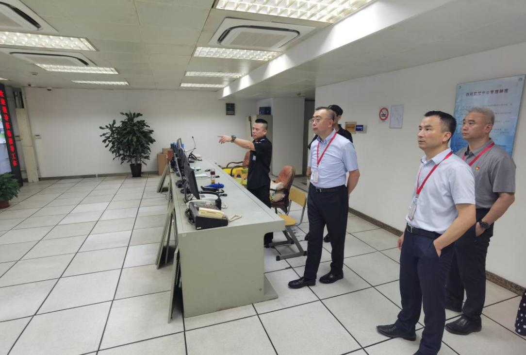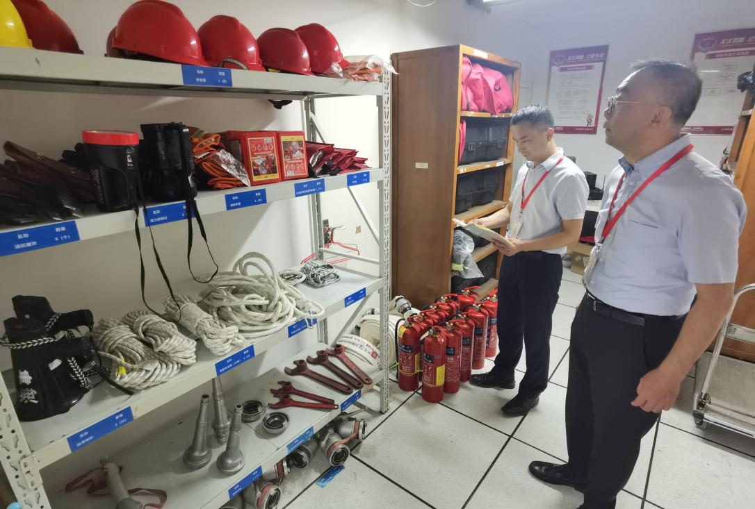 检查组随后来到学校总监控室和微型消防站,通过监控设备现场调取了校园重点区域的运行情况,查看了消防应急设备的储备情况,并在现场通过电话抽检了学校暑假相关岗位的值班到位情况。