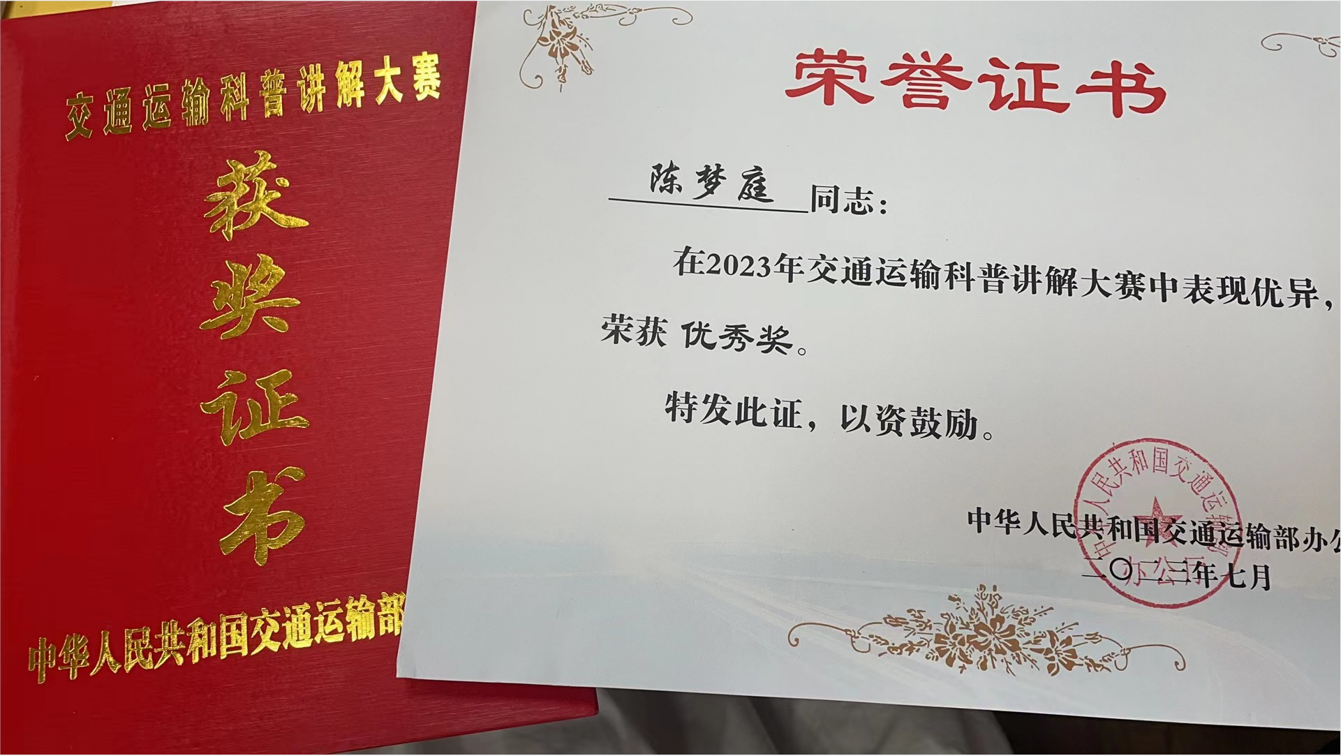 学校陈梦庭老师获2023年交通运输科普讲解大赛优秀奖