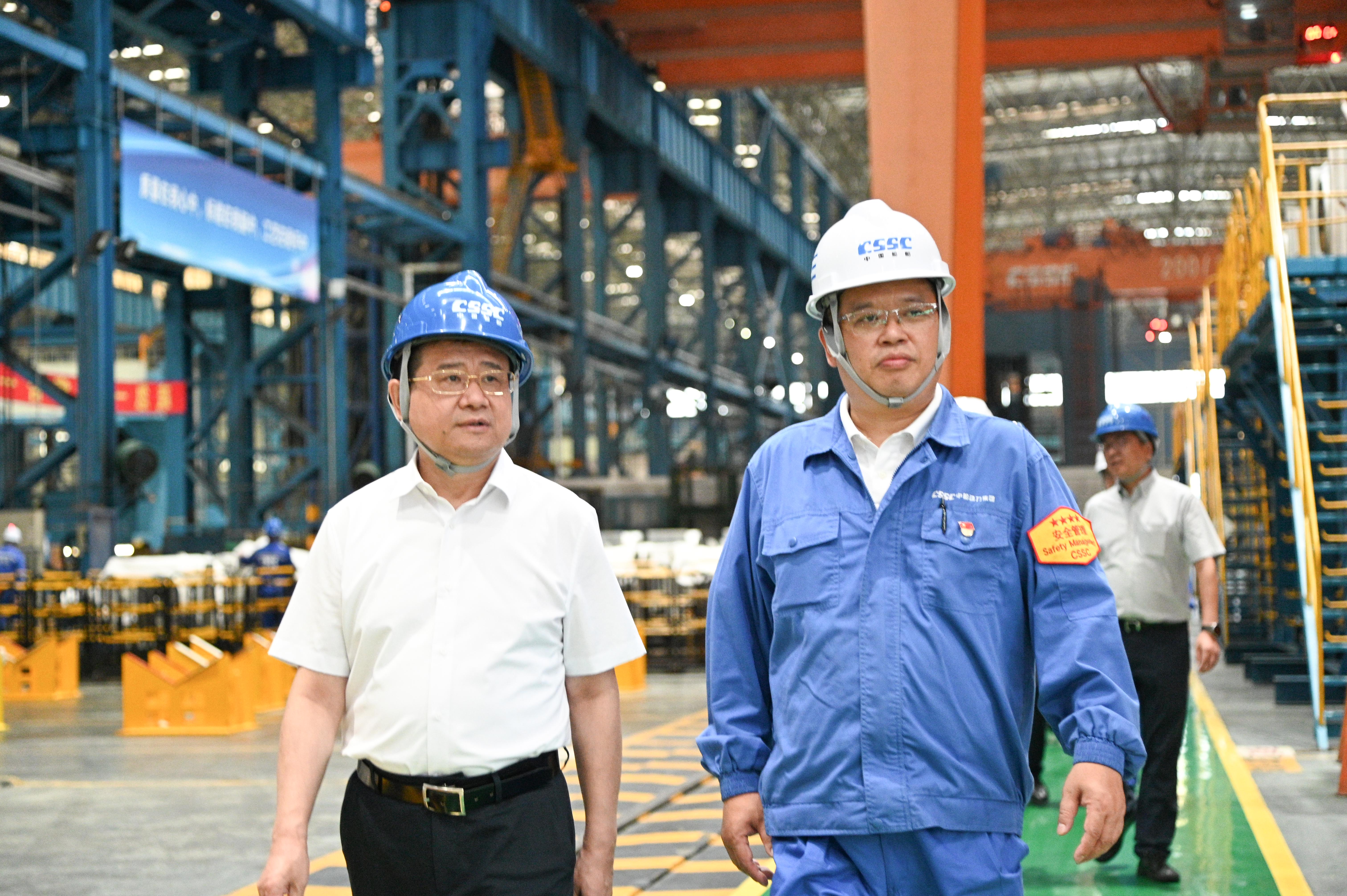 调研期间,宋宝儒一行参观了中船三井车间,实地了解船用发动机生产流程。