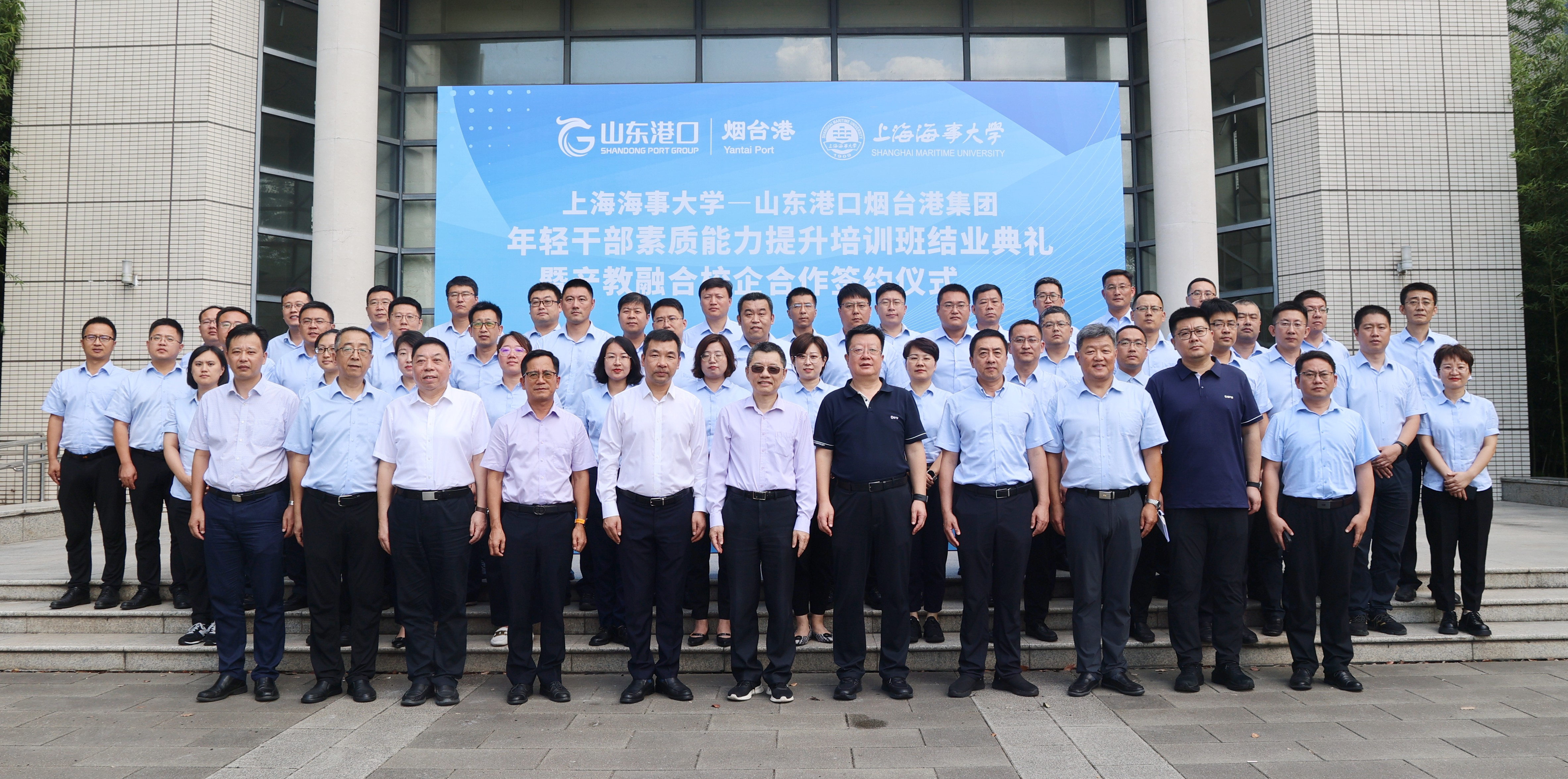 9月6日上午,上海海事大学—山东港口烟台港集团年轻干部素质能力提升培训班结业典礼暨产教融合校企合作签约仪式在临港校区举行。山东港口烟台港集团党委书记、董事长刘国田,副总经理高云宝,上海海事大学校长陆靖,党委副书记、副校长李志鹏出席典礼。山东港口烟台港集团党委组织部(人力资源部)部长仲波,办公室主任衣超,培训中心主任王韶祖,学校校长办公室,经济管理学院相关负责人及培训班43名学员等参加了典礼。