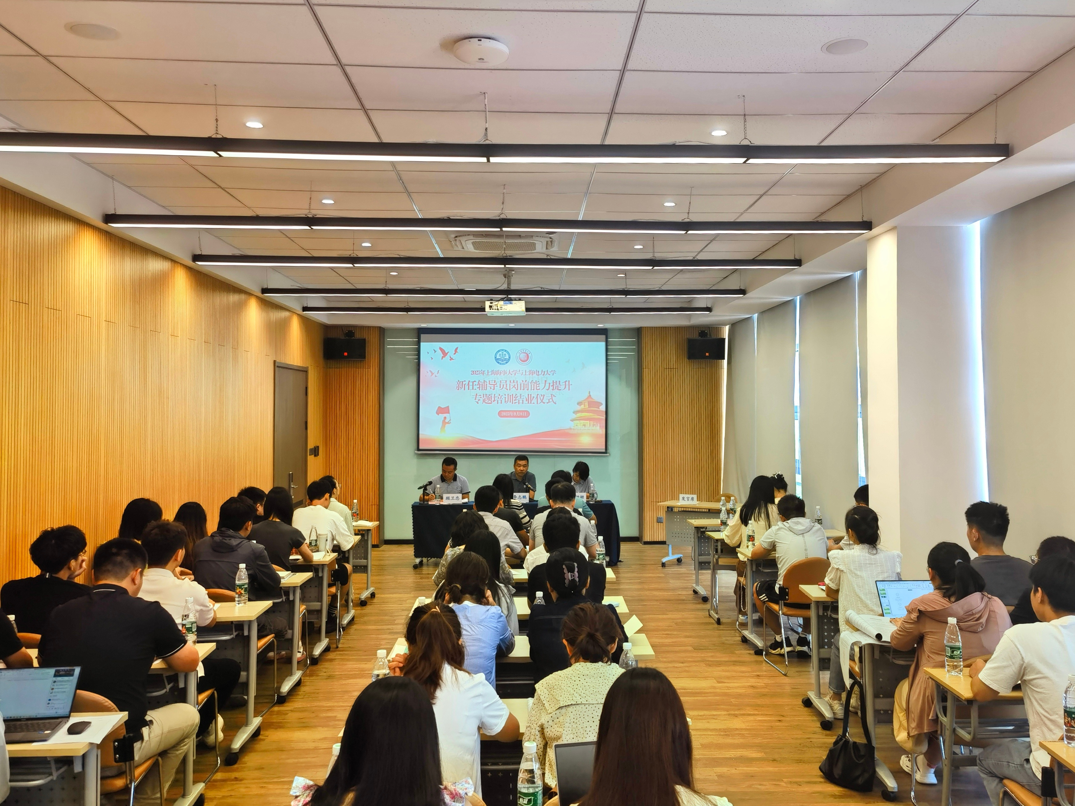 9月8日上午,2023年上海海事大学与上海电力大学新任辅导员岗前专题联合培训结业仪式在学校学生服务中心举行。校党委副书记、副校长李志鹏,上海电力大学学生工作部(处)部长陈姗姗、两校学生工作部(处)相关人员出席,全体新任专兼职辅导员参加结业仪式。