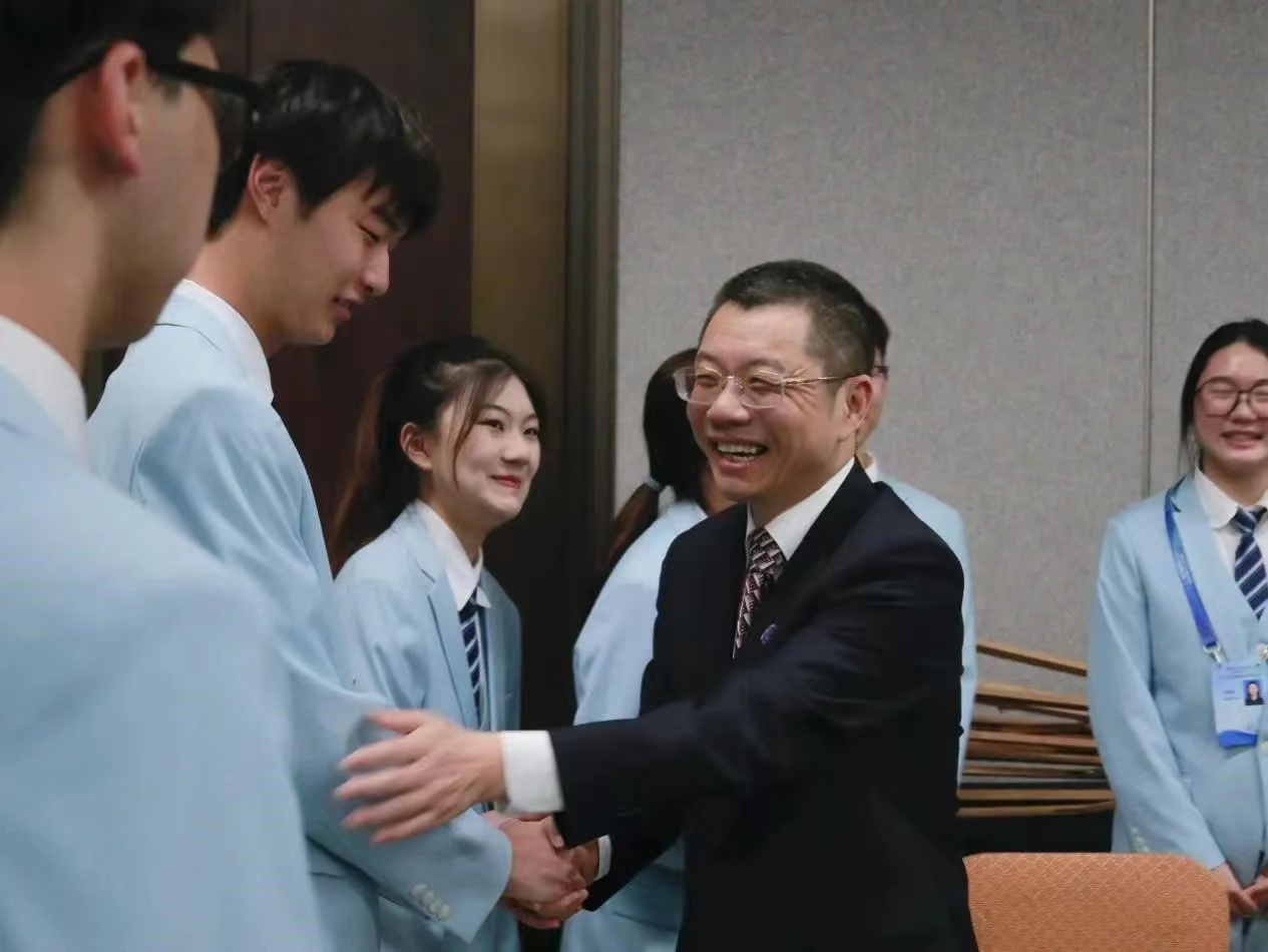 其间,校党委书记宋宝儒,校长陆靖赴世界会客厅参会并亲切慰问学校志愿者,叮嘱同学们要劳逸结合,同时要把握机会,结合专业知识不断提升自己,开拓视野,开拓思维,立足新时代,展现新作为,以实际行动发挥志愿服务在“北外滩国际航运论坛”的积极作用。市交通委副主任叶兴充分肯定志愿者们为此次论坛所做出的贡献,并现场为志愿者颁发服务证书。