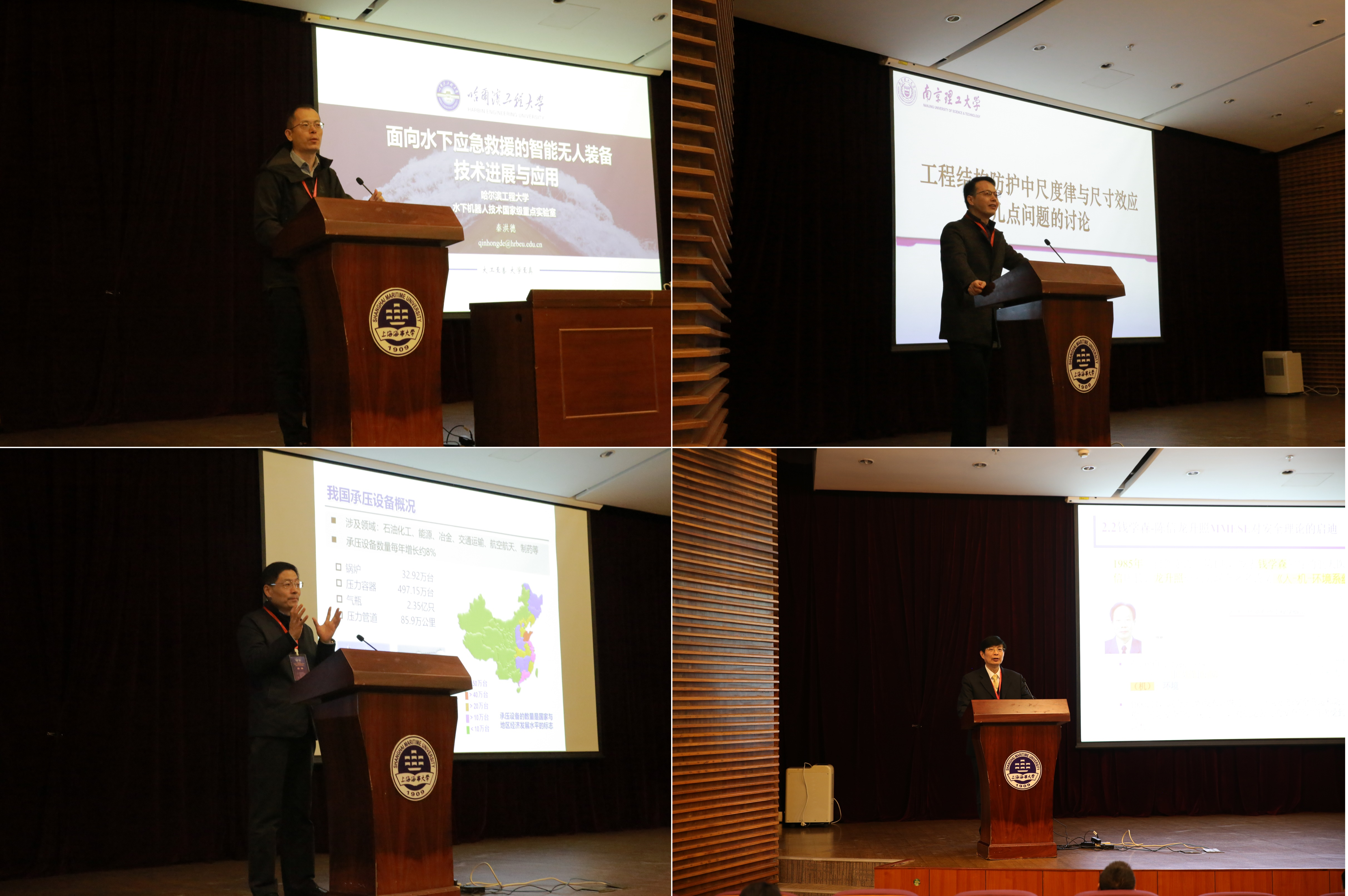 本次论坛邀请了哈尔滨工程大学秦洪德教授、南京理工大学高光发教授、华东理工大学刘长军教授和上海海事大学陈伟炯教授分别围绕水下应急救援智能装备技术、船体结构抗冲击与防护技术,承压结构安全、海事安全文化等前沿方向作论坛主旨报告,并与现场的师生们展开热烈讨论与交流。