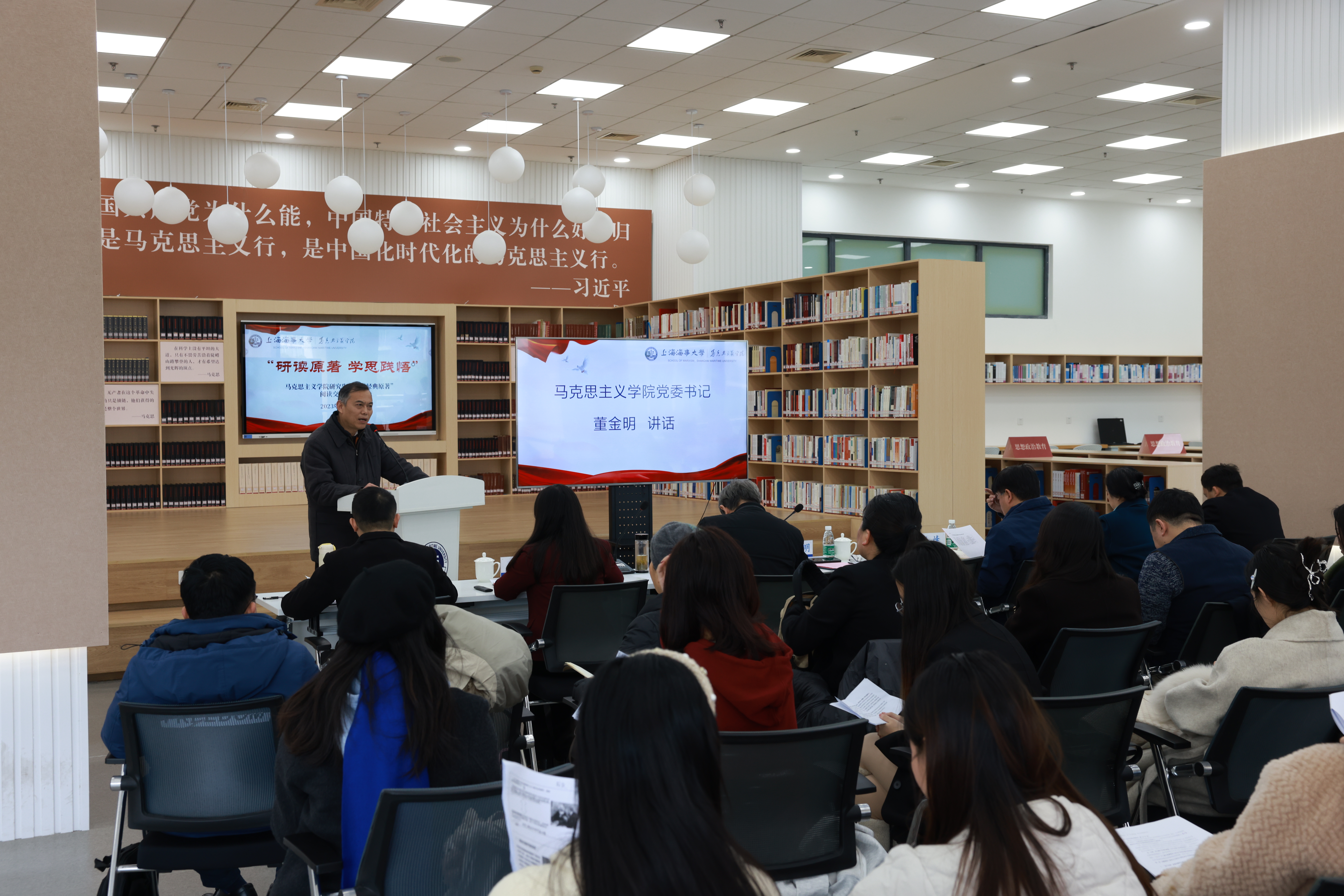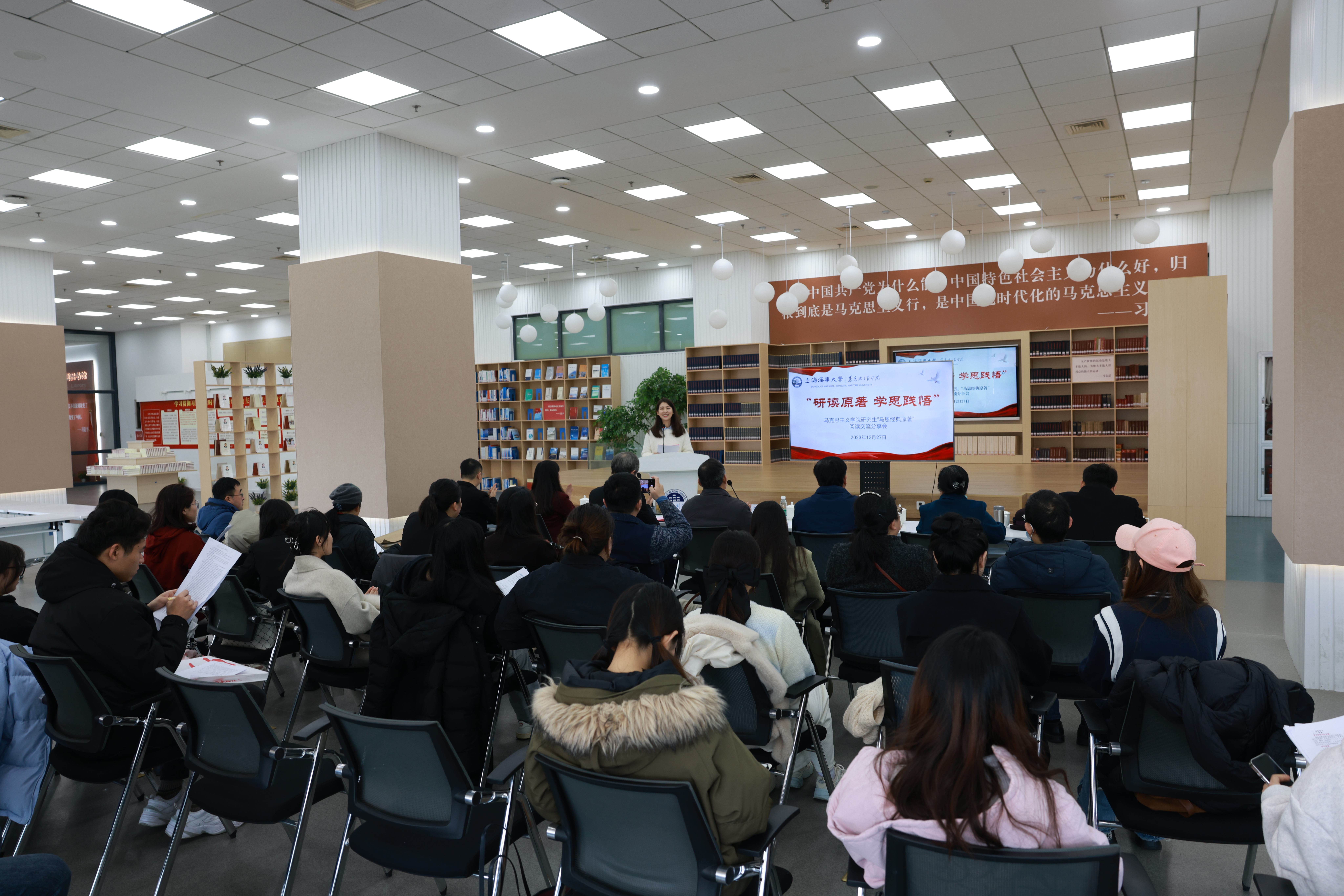 为重温马恩经典,感悟初心使命,12月27日,学校马克思主义学院研究生“马恩经典原著”阅读交流分享会在马克思主义专题图书馆举行。校党委副书记、马克思主义学院院长贺莉出席会议,学校马克思主义学院班子成员、特邀评委刘泽雨教授、研究生导师代表、青年教师代表以及学院 2023 级全体研究生共50余人参加活动。