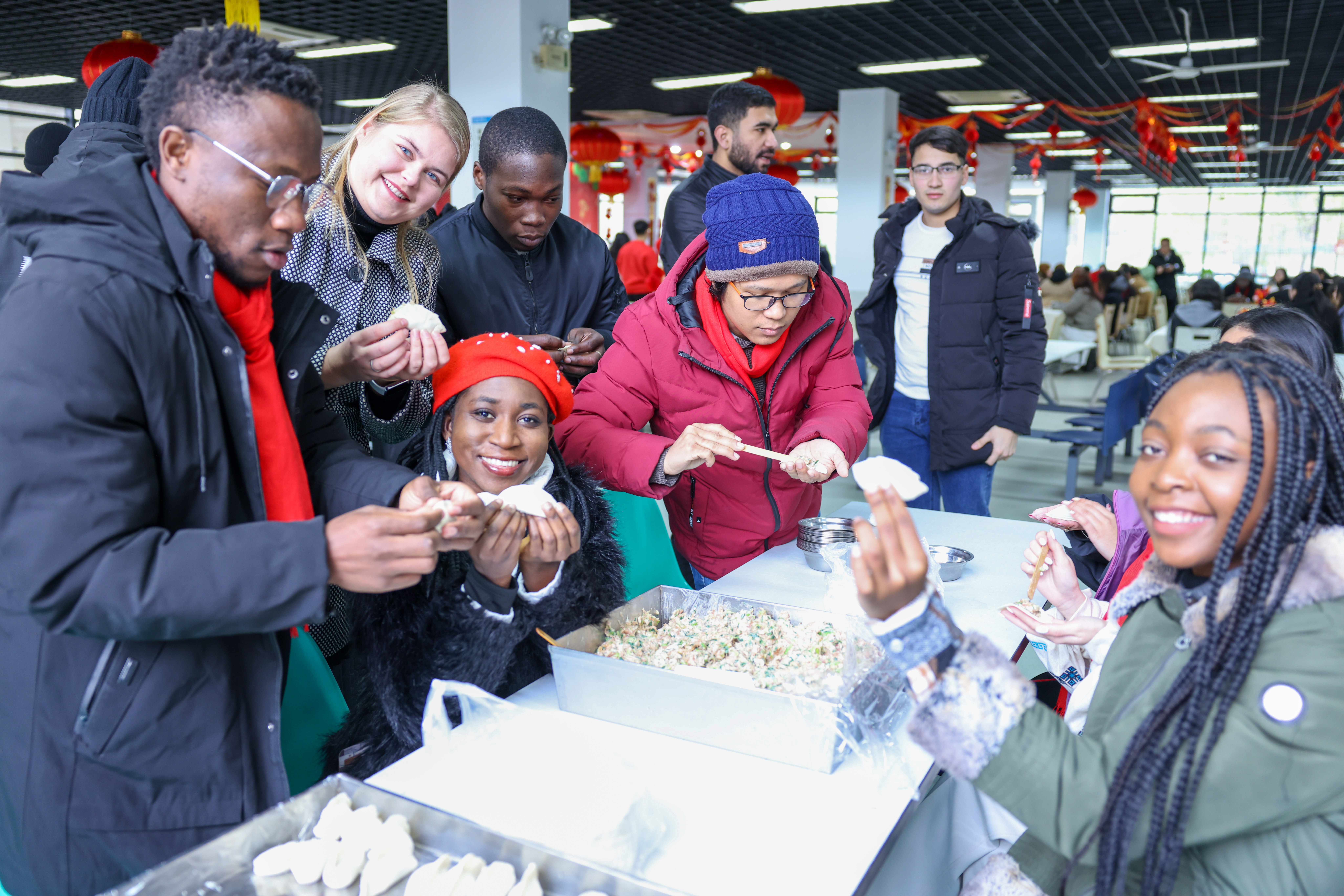 团拜会上,学校室内乐团、合唱团、舞蹈团的同学们带来了精彩纷呈的新春表演。来自比利时、意大利、孟加拉等国的留学生们和中国师生一起载歌载舞,共同庆祝新春佳节。