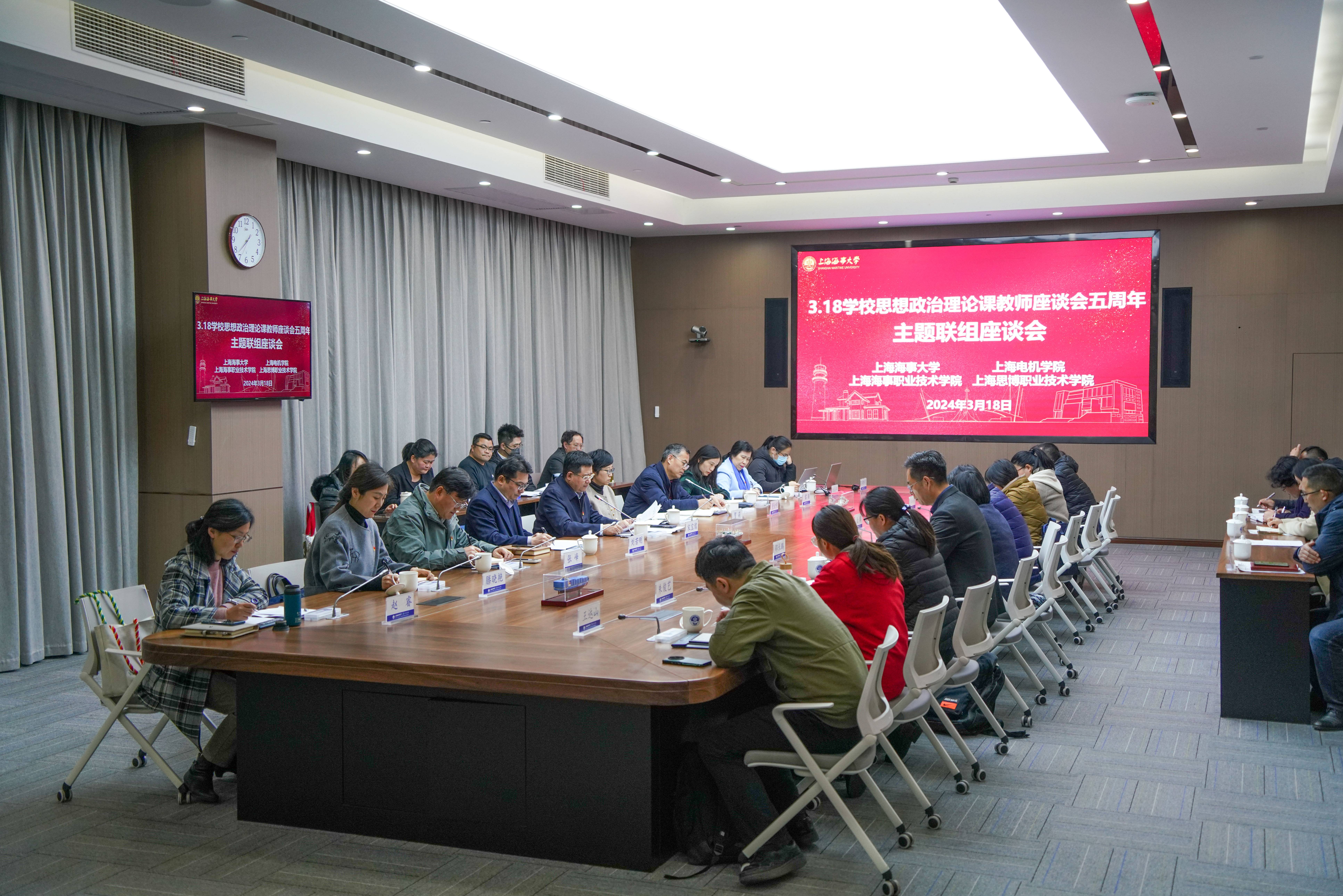 为重温习近平总书记“3·18”重要讲话精神,“3·18”学校思想政治理论课教师座谈会五周年主题联组座谈会在学校召开。本次联组座谈会由上海海事大学、上海电机学院、上海海事职业技术学院以及上海思博职业技术学院4家共建单位的马克思主义学院联合主办。校党委书记宋宝儒,党委副书记贺莉,上海海事职业技术学院党委副书记、常务副院长刘若刚出席会议,来自四所高校的马克思主义学院党政负责人及思政课教师共30余人参加会议。