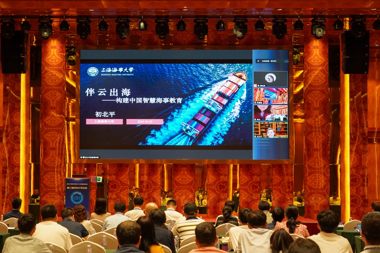 初北平指出,当前世界海事领域在治理体系、绿色化发展、数字化转型、安全保障等方面正面临着新的发展趋势,中国应积极参与全球海事治理,携手各国共同应对海事挑战,提升全球海事治理效能。他从中国应有怎样的智慧海事教育、如何推动海事教育走出去等方面阐述了对“伴云出海”主题的思考。初北平介绍了学校近年来借助人工智能、大数据、数字孪生等新技术,在赋能海事教育高质量发展等方面的思考与探索。希望与各界加强交流合作,共同推动中国智慧海事教育取得新突破、新发展。