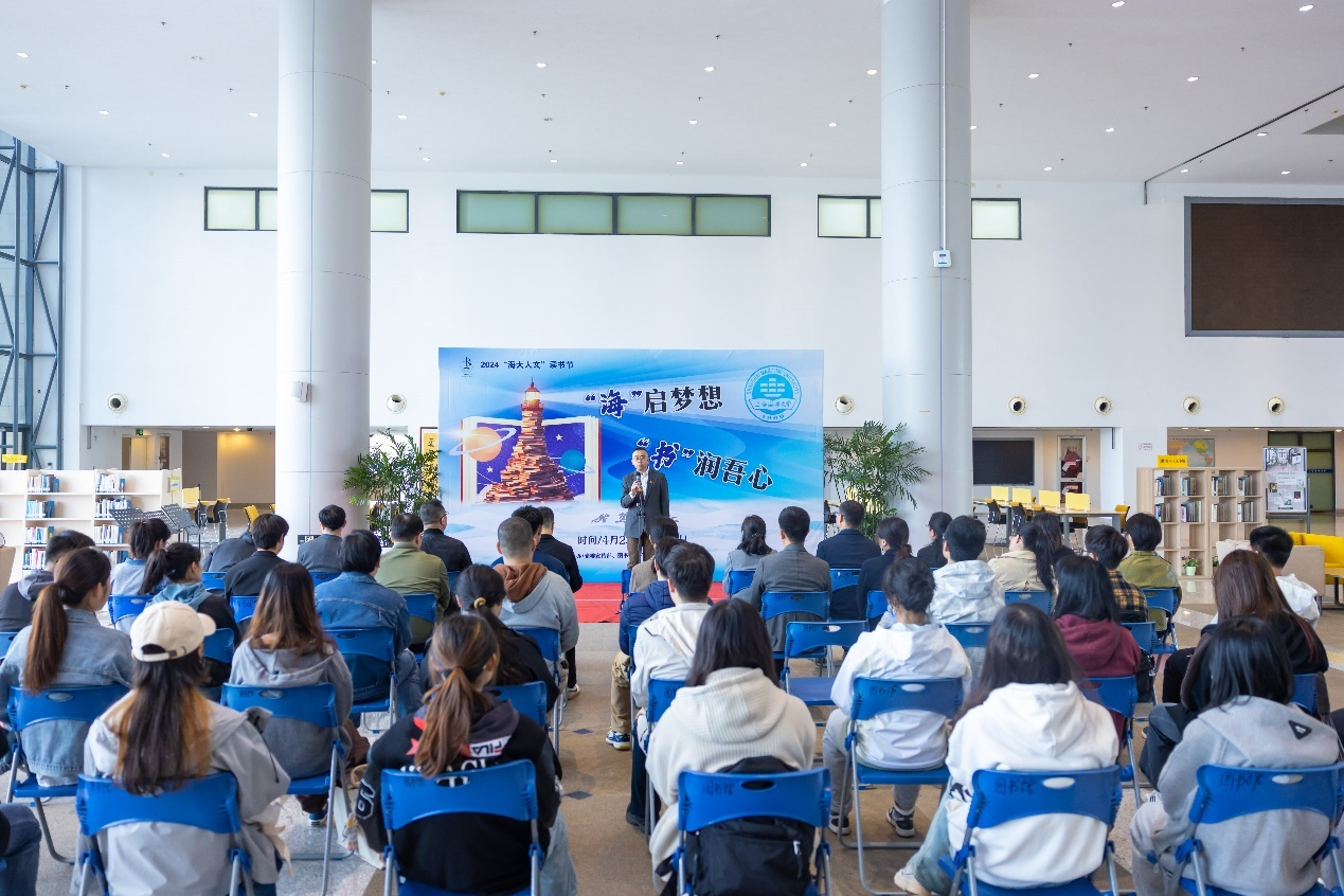 4月23日中午,学校2024年“海大人文”读书节开幕式在图书馆大厅举行。校党委副书记、纪委书记严大龙出席开幕式并致辞,党委宣传部、图书馆(档案馆)、学生处、团委、教工读书协会相关负责人,2023年“阅读之星”获奖者和部分读者代表参加开幕式。