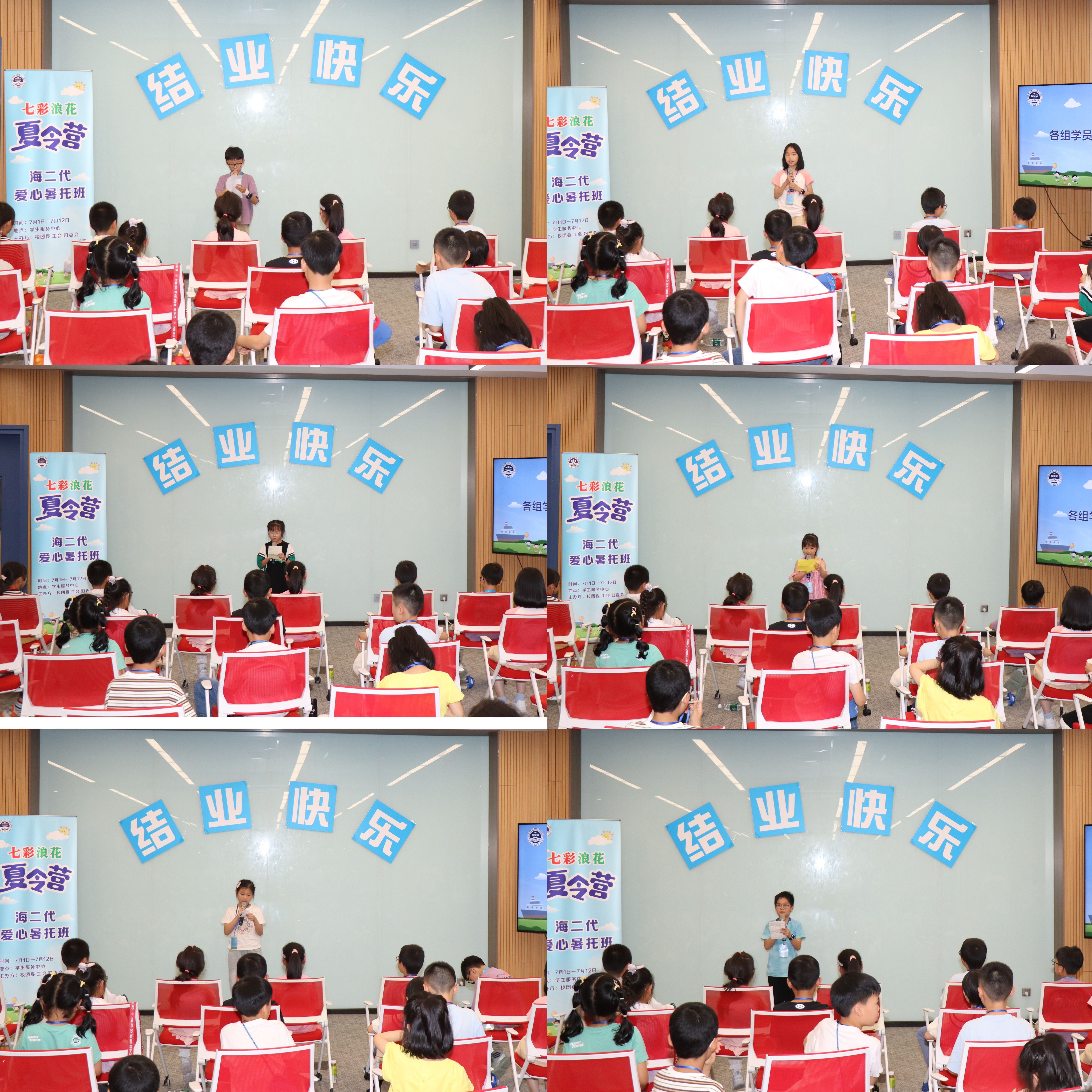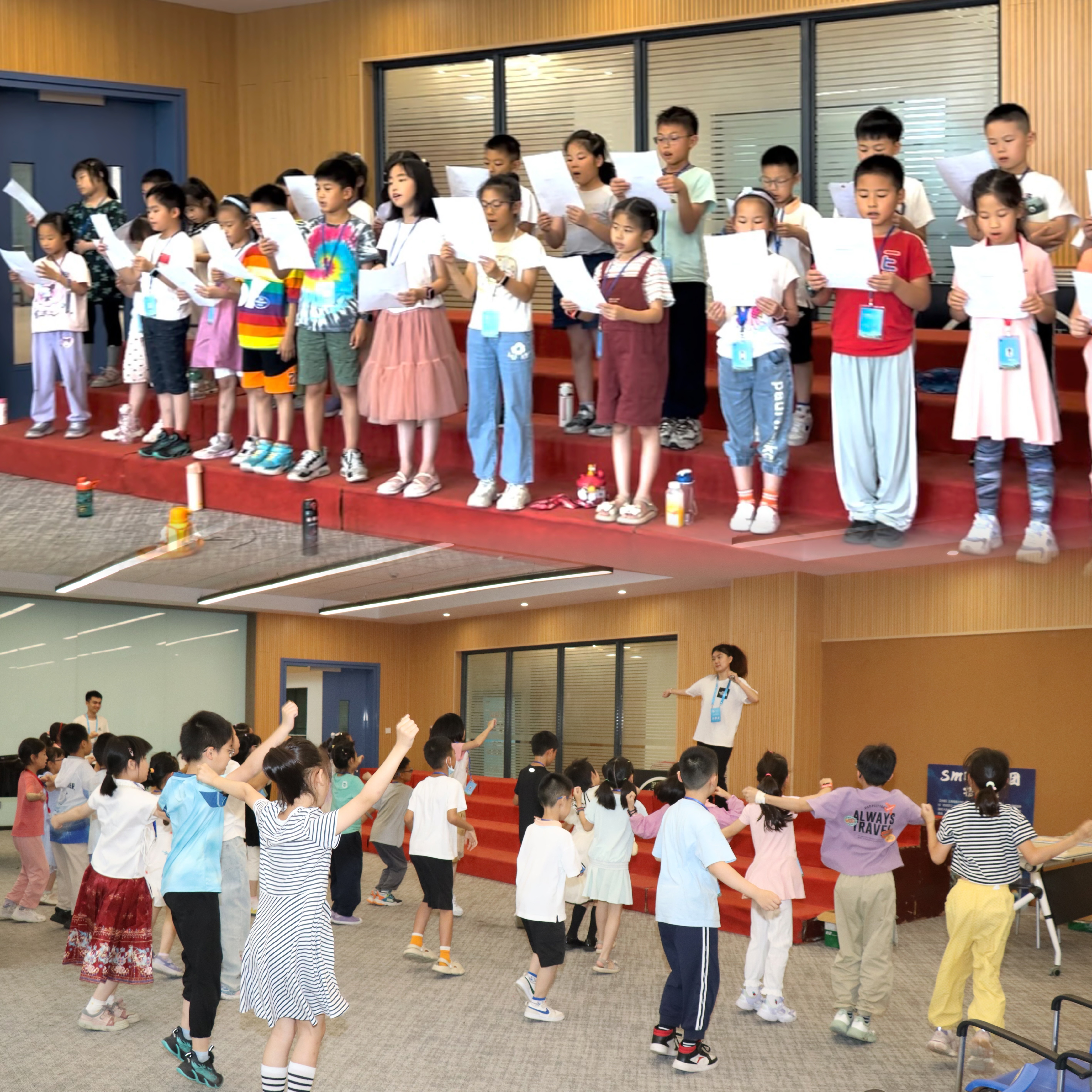 结业仪式上,小朋友们分享了两周的快乐课程体验,表达了对朋友和老师的不舍。