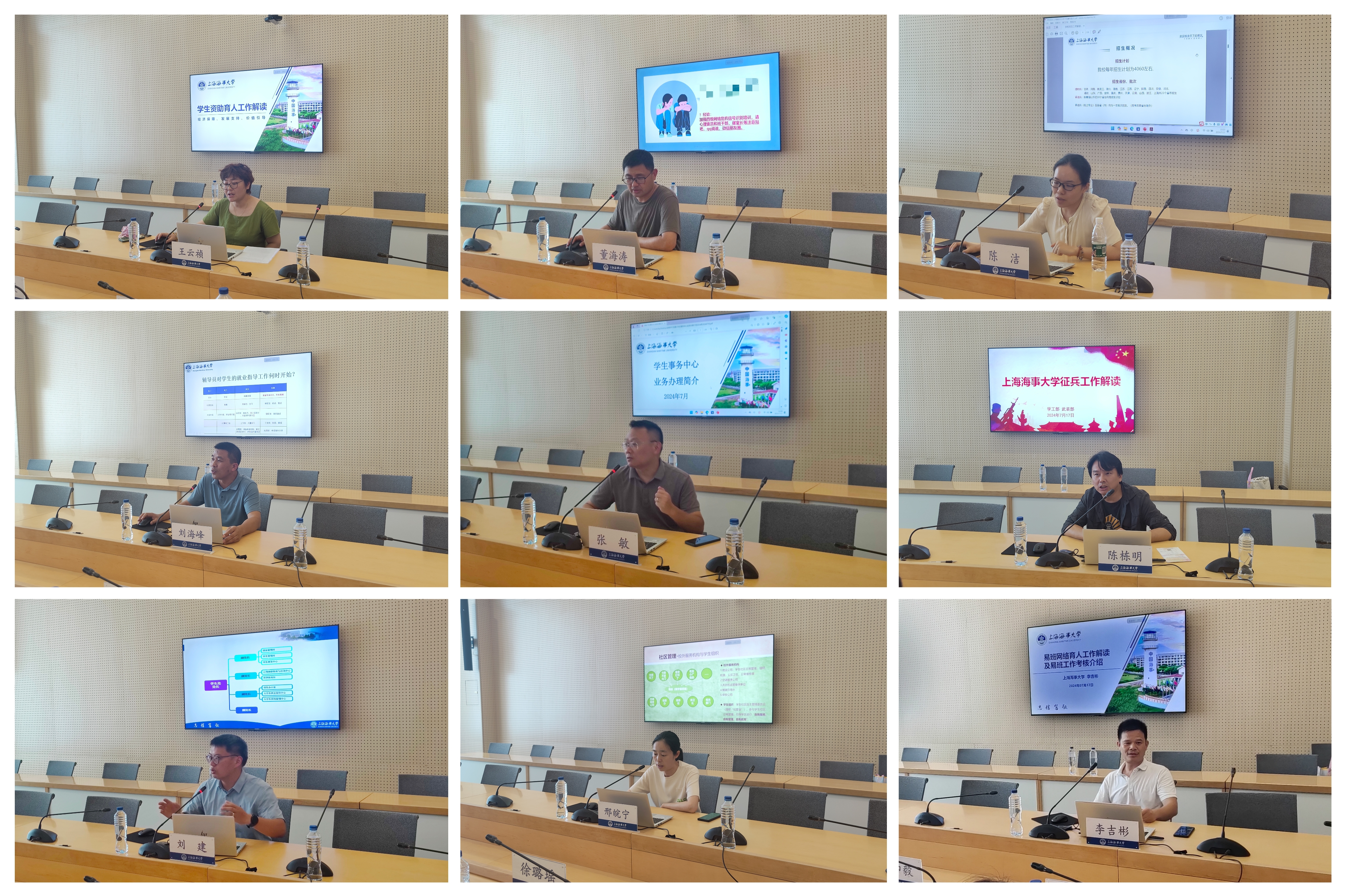 学生工作部(处)负责人强调,辅导员要深入了解学生、积极融入团队、创新工作方法,关注学生心理健康,指导学生职业规划,引导学生成长成才。校内工作实务培训环节,校团委、党委宣传部、保卫处,学生工作部(处)等部门分别就学生招生就业、辅导员能力提升、班团组织建设、宣传引导与舆情风险防范、学生安全稳定、资助育人、管理育人、网络育人、心理健康及危机干预、社区管理、学生事务中心工作、征兵工作等方面的工作实务进行了细致的讲解。