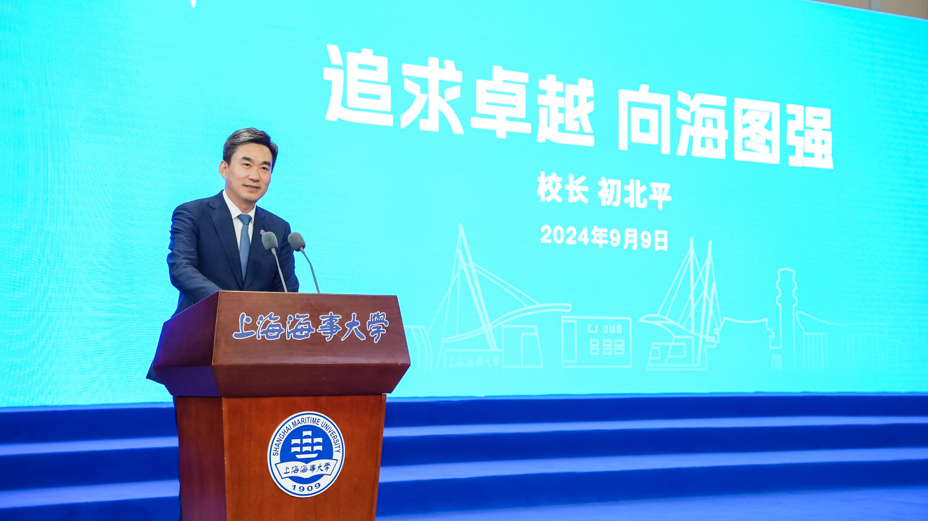 典礼结束后,初北平校长以“追求卓越、向海图强”为主题讲授了2024级研究生新生开学第一课。