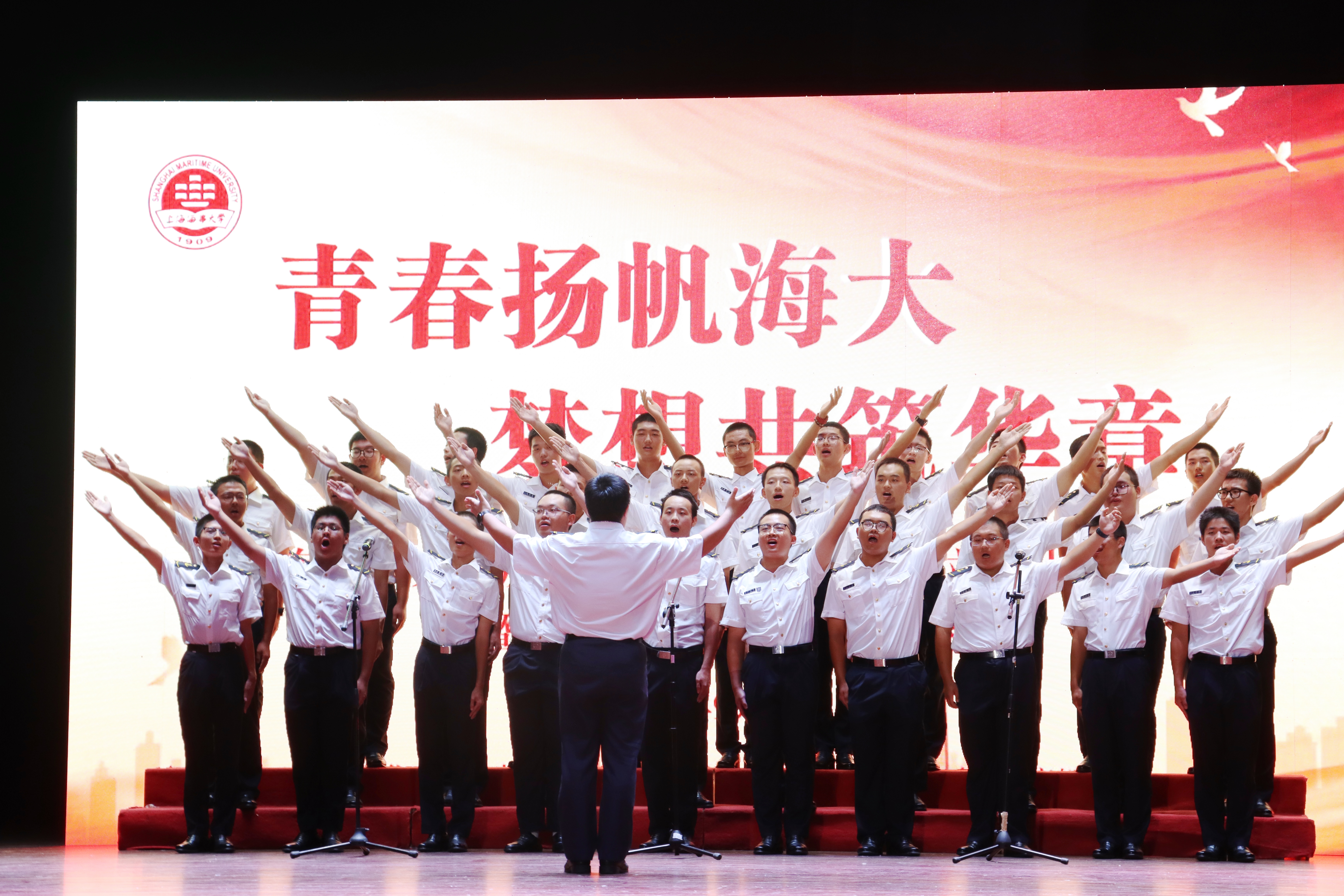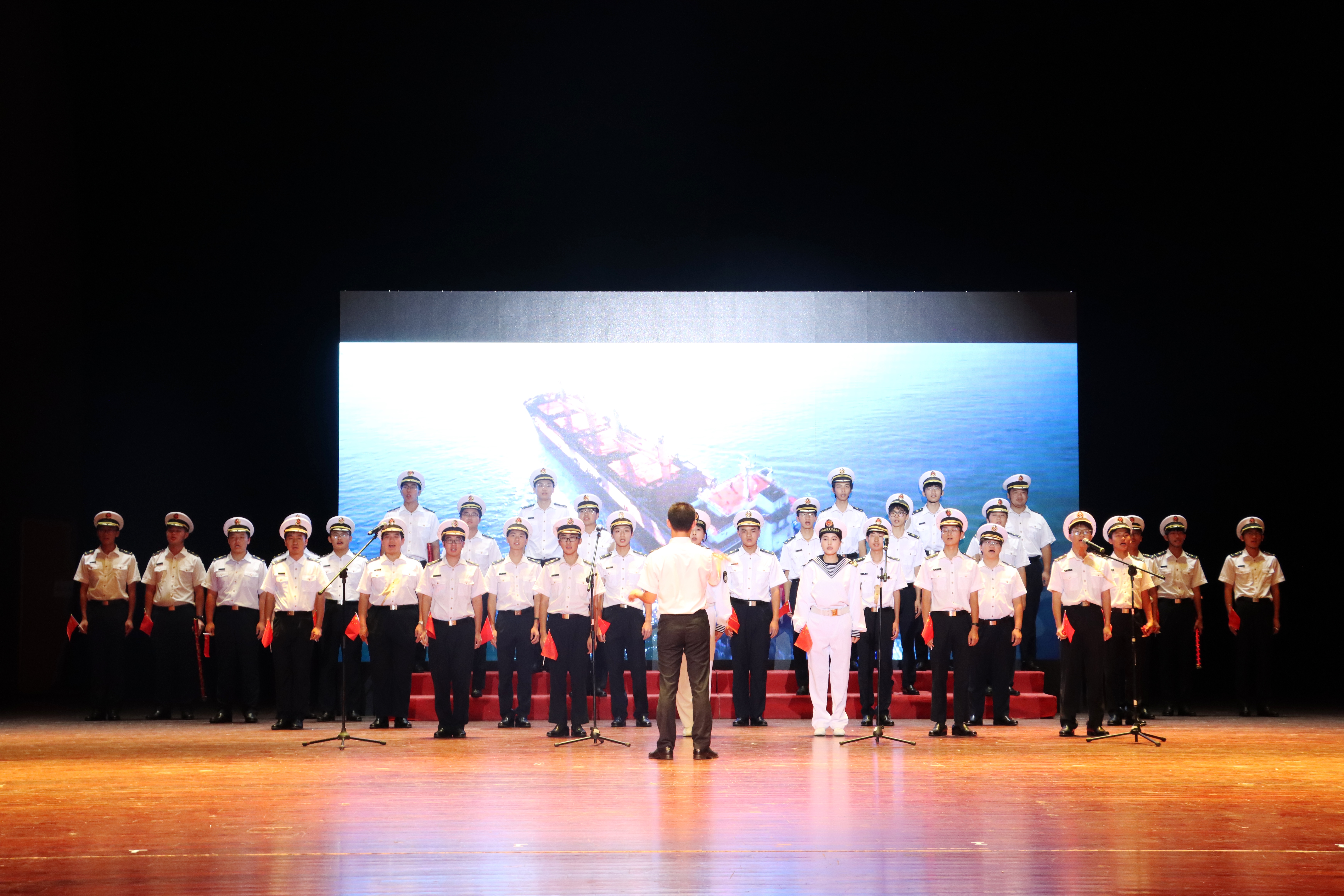 第三篇章“梦想未来,共铸辉煌”则以寄语未来、励志扬帆为主题。航运业前辈们通过视频的方式寄语新航海人,传递了对新生们的殷切期望与美好祝福。晚会最后,全场共同齐唱《我相信》《歌唱祖国》,将晚会推向了最高潮,表达了海大师生对祖国繁荣昌盛的深情祝福和对未来生活的美好祝愿。