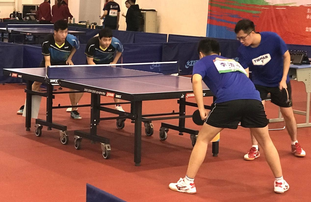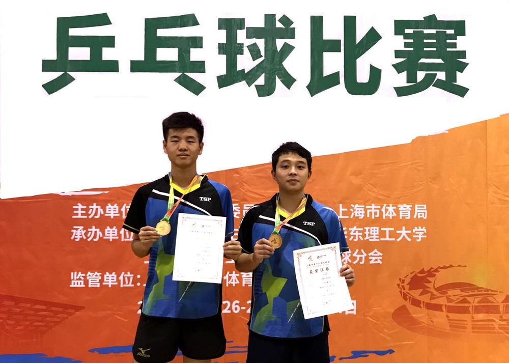 我校乒乓球队在教练员姚桐老师的带领下参赛,运动员们经过奋力拼搏,取得了普通组甲组男子双打第一名、混合双打第三名、男子单打第六名的优异成绩。