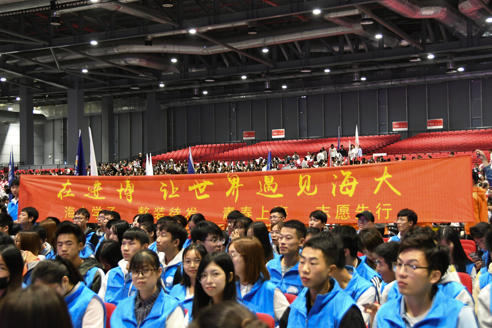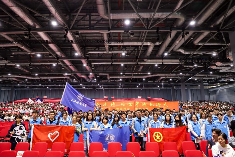 10月20日,首届中国国际进口博览会(以下简称“进博会”)志愿者上岗仪式暨集中培训大会在上海国家会展中心虹馆举行。上海市委副书记尹弘、上海市副市长吴清、团市委书记王宇、中国国际进口博览局副局长孙成海等出席大会。我校120多名志愿者参会,身着统一蓝色马甲,在会场上展现了海大志愿者的独特风采。