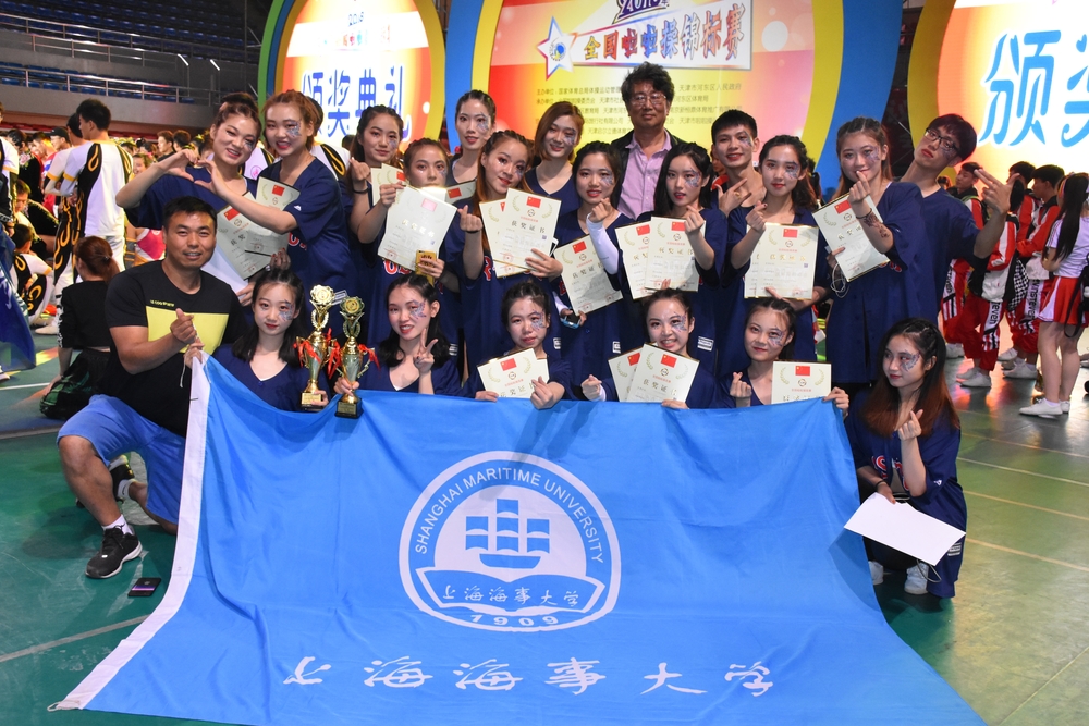 5月22至28日,2018年全国啦啦操锦标赛在天津市河东区东局子体育馆开赛。我校健美操队荣获大学组大集体自选街舞冠军、大学组大集体自选花球亚军的优异成绩,并被全国啦啦操委员会授予我校健美操队代表中国参加2018年国际啦啦操系列赛事资格。