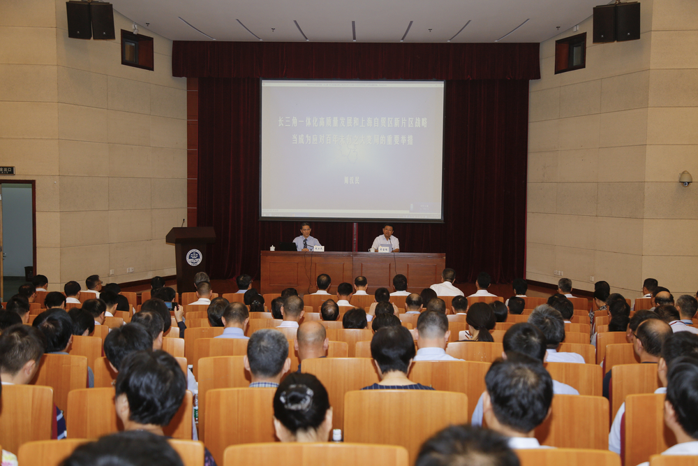 联组学习研讨前聆听了上海市政协副主席周汉民以“长三角一体化高质量发展和自贸区新片区应当成为应对百年未有之变局的重要举措”为题的辅导报告。周汉民副主席通过一系列数据和案例,详尽介绍了百年未有之大变局的六大表现,深入解读上海自贸试验区临港新片区和长三角区域一体化发展战略,对如何深入地开展临港新片区建设,融入长三角一体化建设提出了独到的见解。
