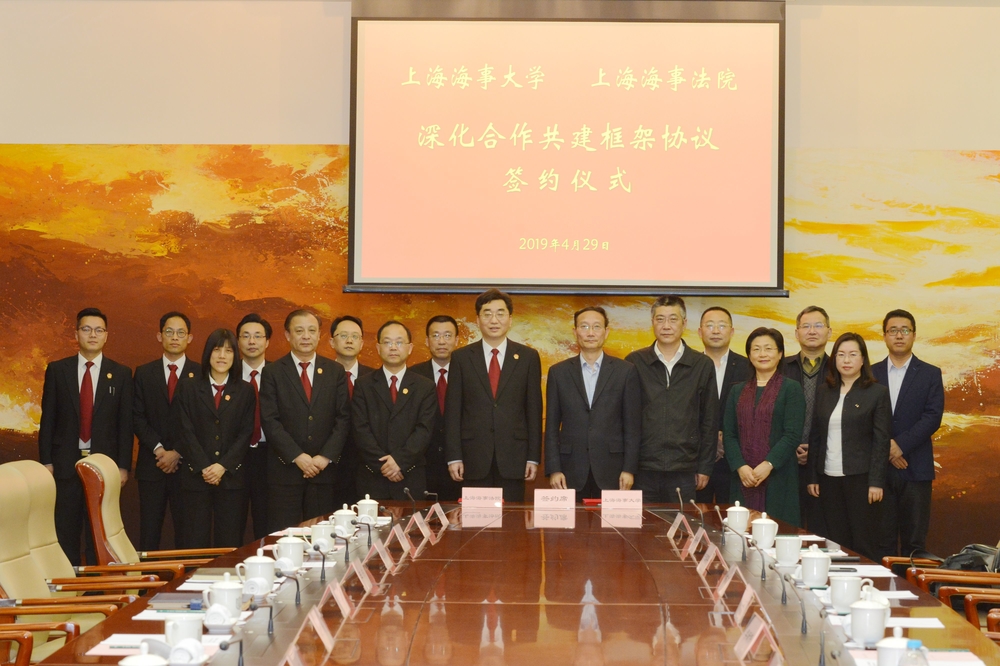 4月29日下午,上海海事大学与上海海事法院深化合作共建框架协议签约仪式在上海海事法院举行。双方将在学术交流、业务培训、人才培养等领域进一步加强合作。上海海事法院院长汪彤、副院长荚振坤,上海海事大学校长黄有方、副校长杨万枫等出席仪式。