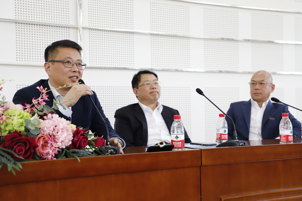 刘洁教授作了题为“追随物流的脚步——全球捷运“的主题演讲,他以个人工作经历为切入点,讲述自己创业和企业成长的故事。“追随物流的脚步”这一简短精炼的语句充分体现出刘教授对物流行业的深厚感情,同时作为上海海事大学校友,刘教授表达了对母校真挚的感情,并且寄予美好愿景。