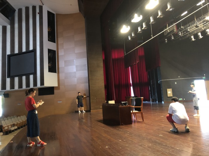 2019年7月8日,上海戏剧学院王佳健导演一行到我校实地考察大师剧《陈嘉震》演出剧场,并参观我校地标性建筑,了解我校建校历史。校团委相关负责人及学生代表陪同。