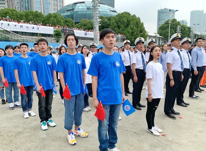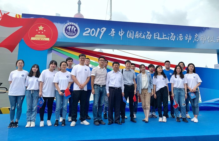 2019年7月11日,2019“中国航海日”上海主题活动在上海港国际客运中心举行,海事、救助、海事大学、航运界高级船长、科研人员、市民代表等三百余人列队,共同庆祝第15个中国航海日。同时,黄浦江上举行帆船展示活动,向市民展示体育竞技类现代帆船,弘扬拼搏进取的航海精神,凝聚起建设上海国际航运中心和海洋强国的意志力量。海大学子助力其中,在多岗位做出贡献,彰显海大风采。