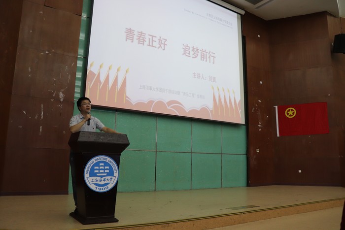 开营仪式结束后由上海海事大学法学院团委书记刘直老师以“青春正好,追梦前行”为主题为学员们进行开营第一课,刘直老师通过分享自己大学和读研时的学习和生活经历通过“情怀、担当、激情和梦想” 这四个关键词告诉学员们要珍惜青春时光,勇敢追求梦想。